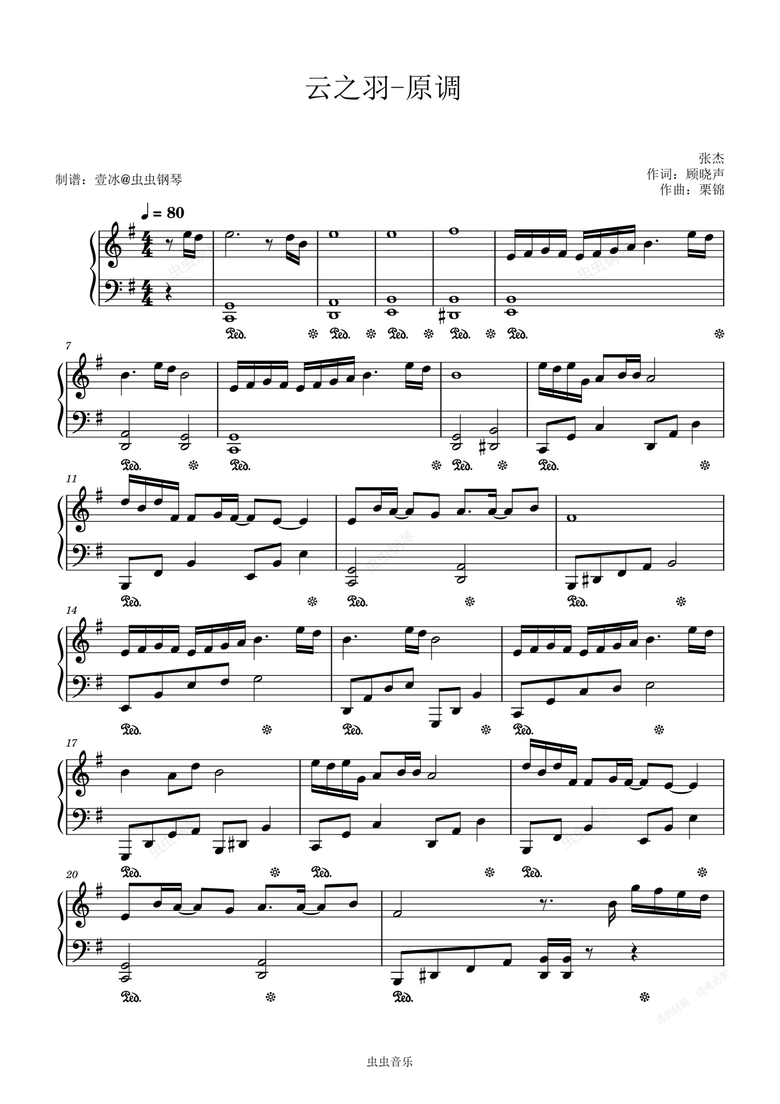 钢琴谱:云之羽//张杰 《云之羽》电视剧插曲 - 原调 简单易上手