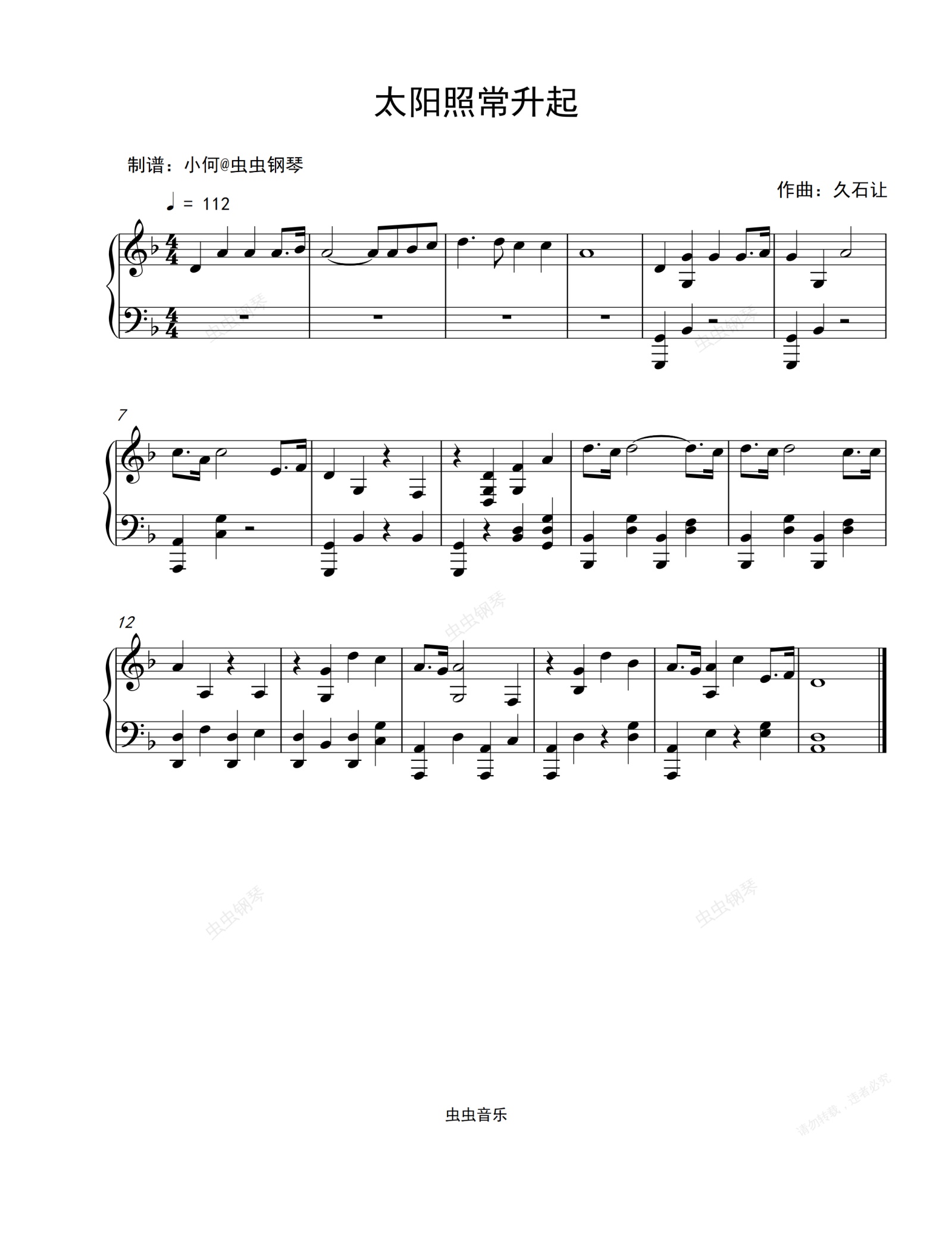 钢琴谱:太阳照常升起-让子弹飞配乐-久石让