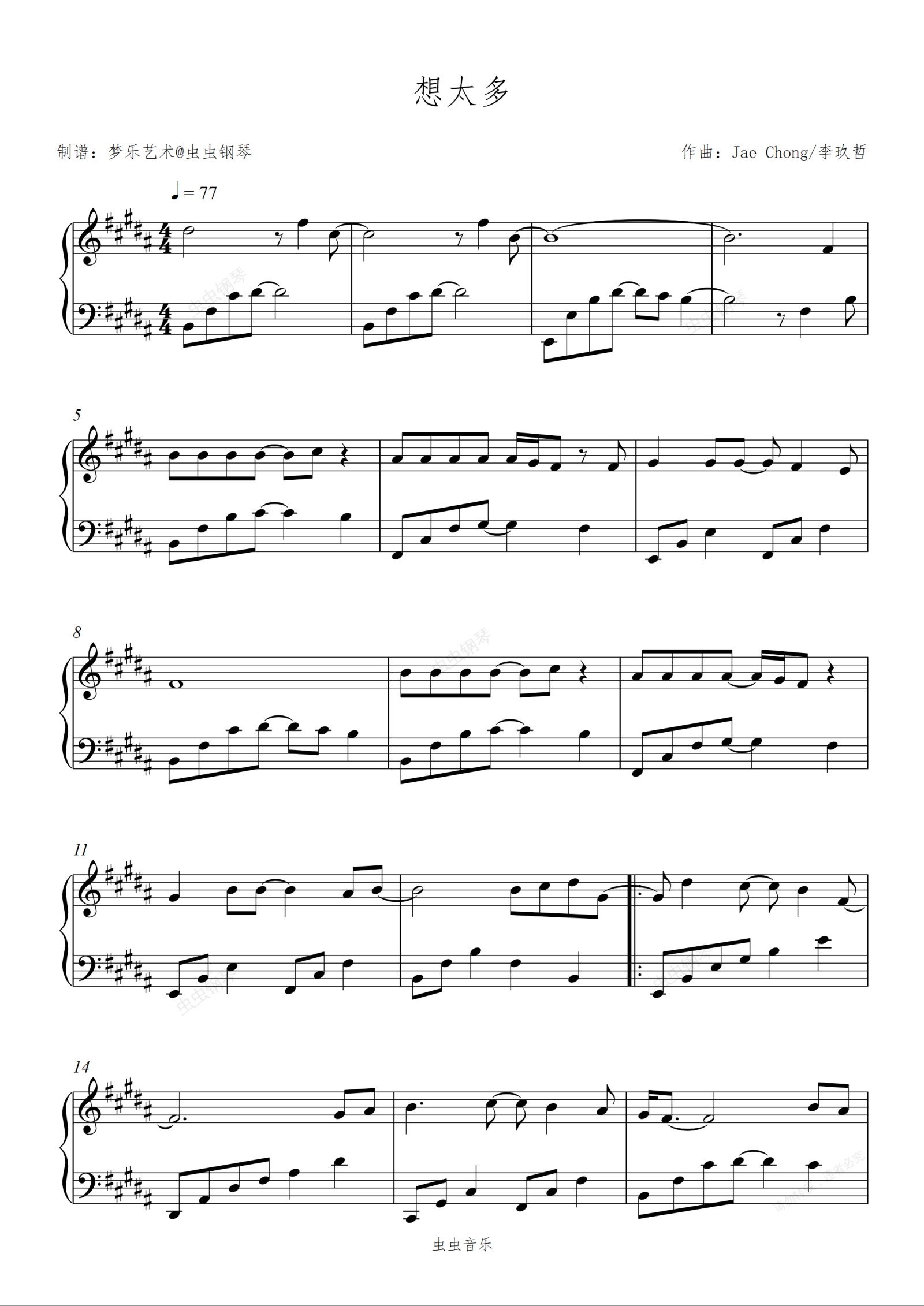钢琴谱:想太多 李玖哲 B调(原调)优化完整版