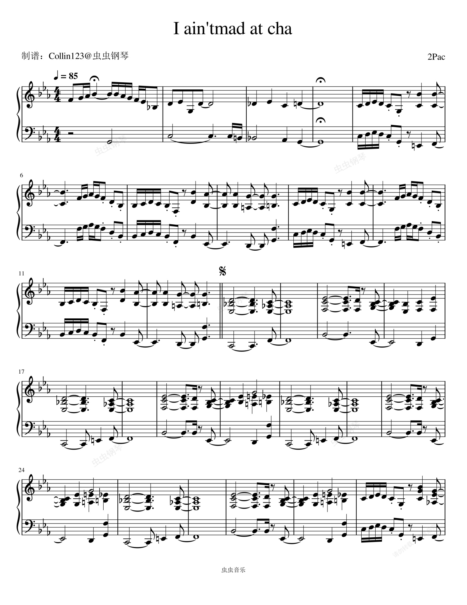 钢琴谱:I Ain't Mad At Cha - 2Pac