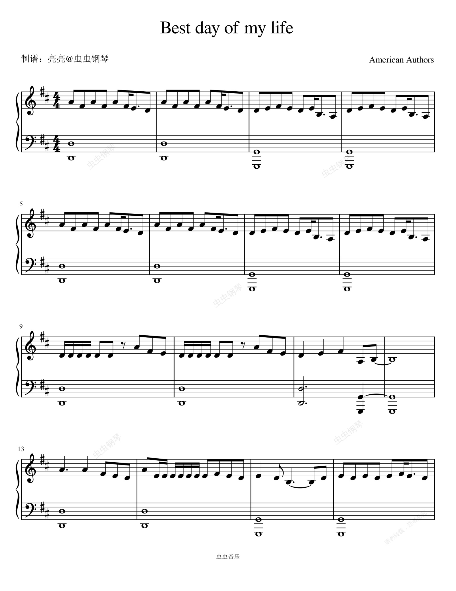 钢琴谱:Best Day Of My Life - American Authors 简单 好弹