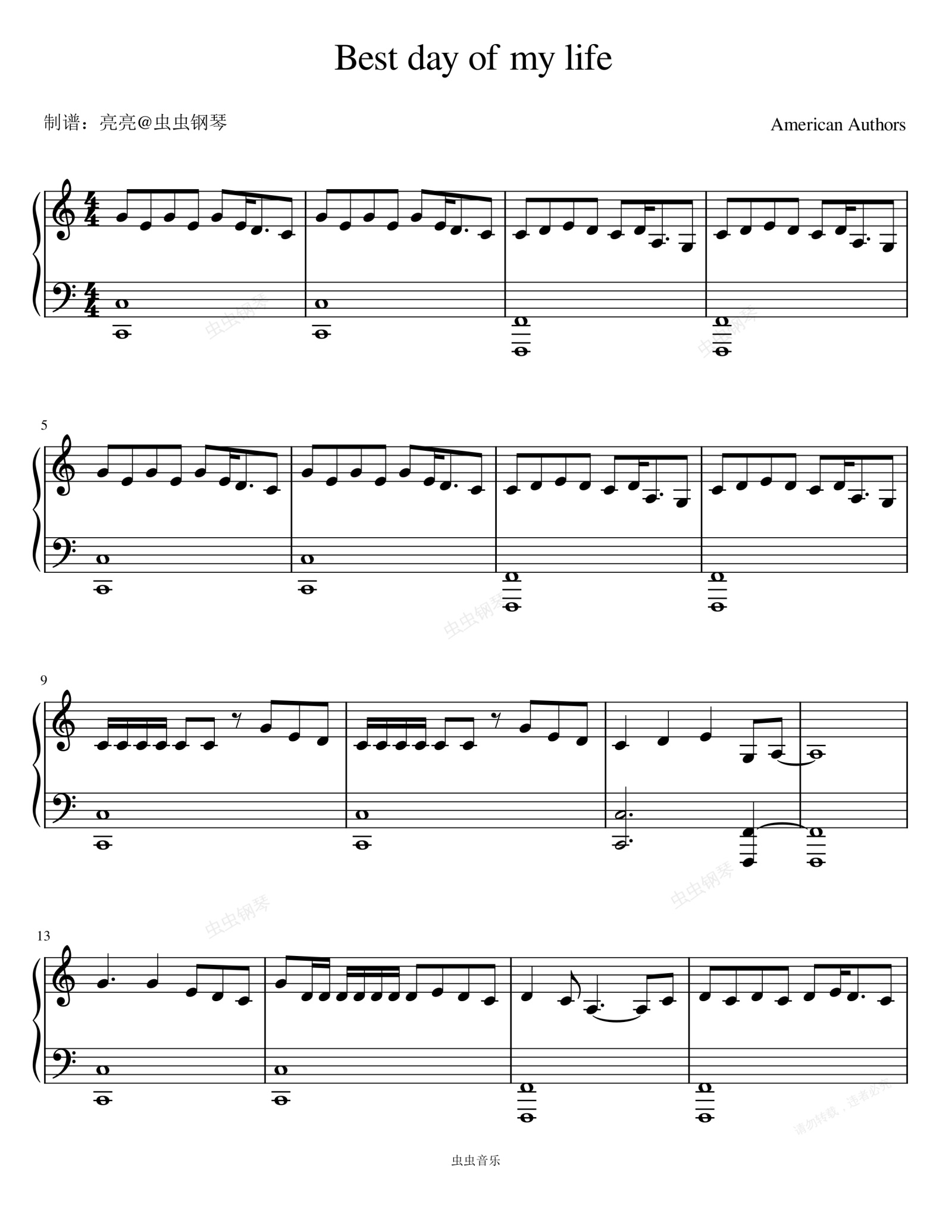 钢琴谱:Best Day Of My Life - American Authors 简单 好弹 C调