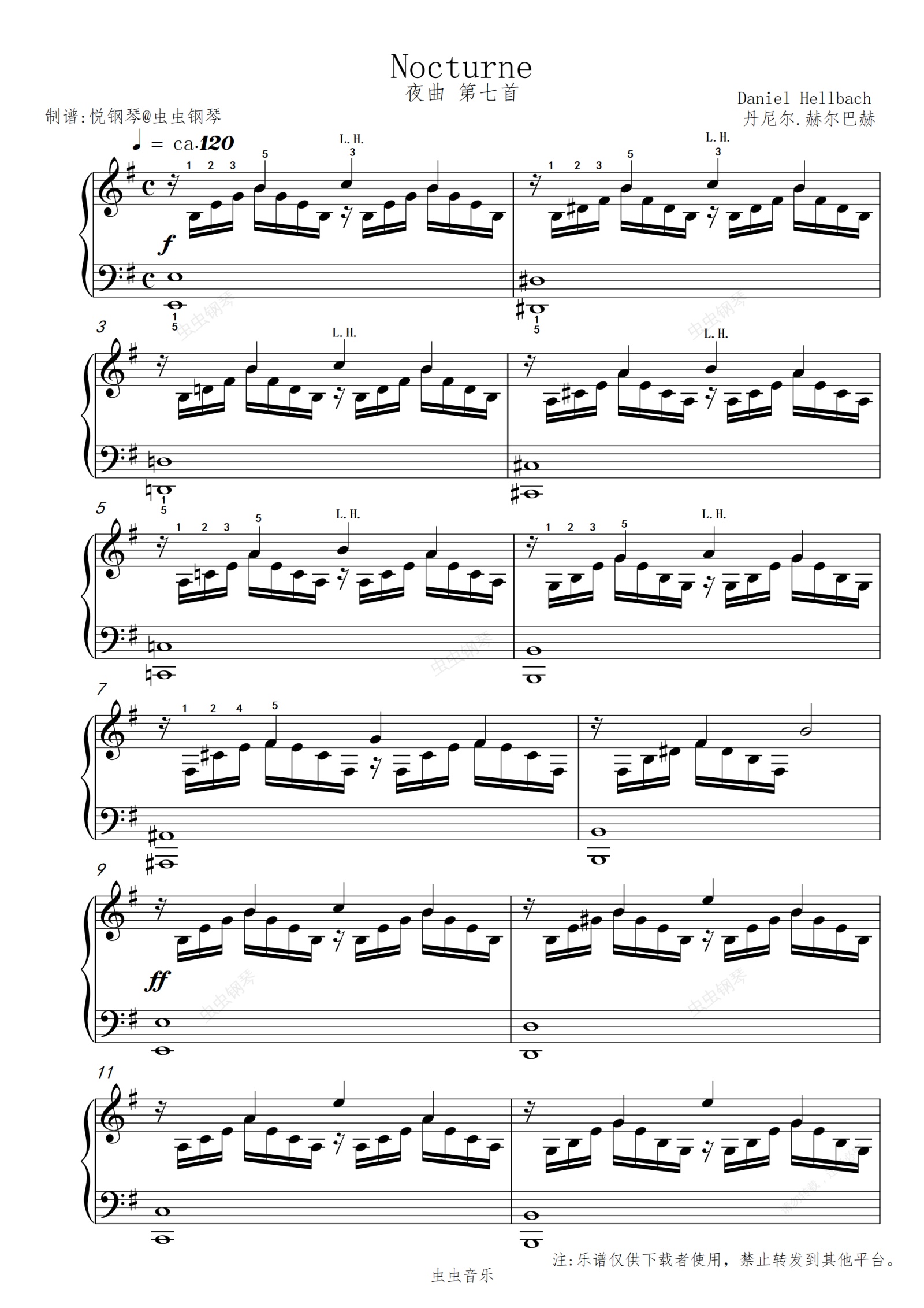 钢琴谱:夜曲/Nocturne第七首- 丹尼尔.赫尔巴赫-免费乐谱【抒情-唯美】