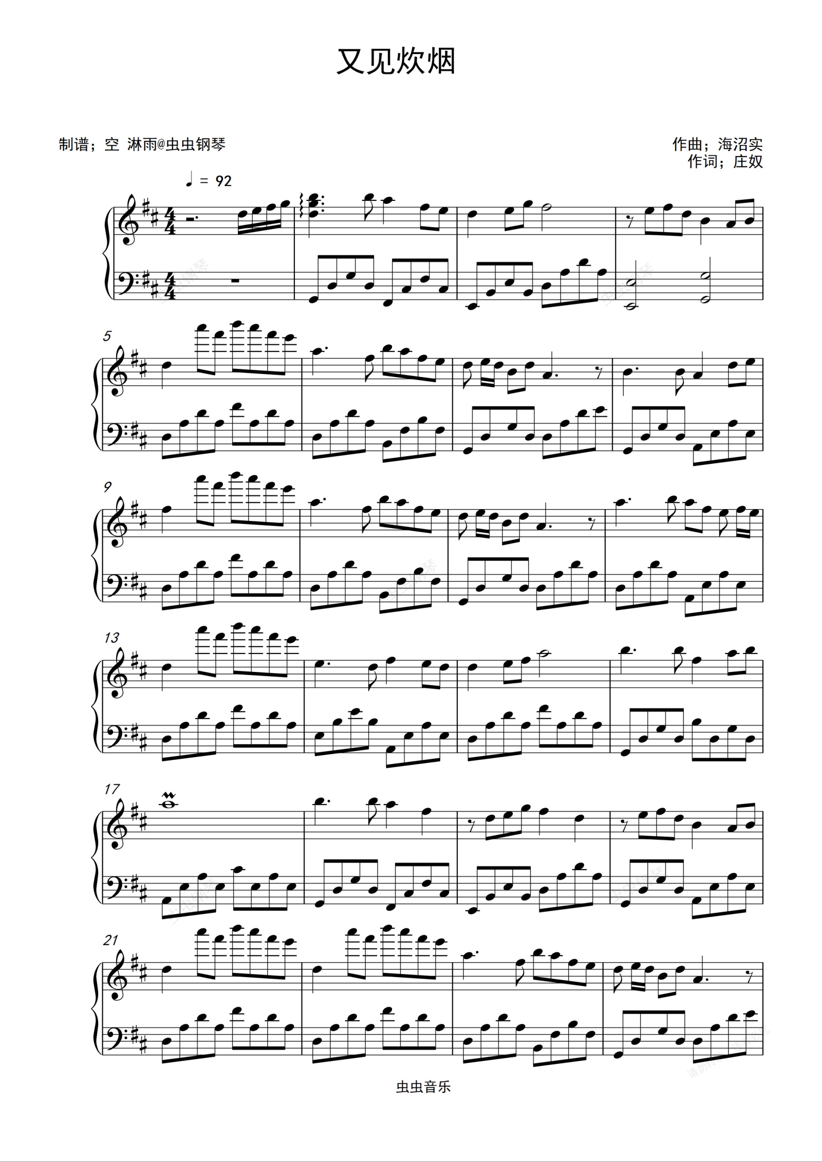 钢琴谱:又见炊烟 邓丽君
