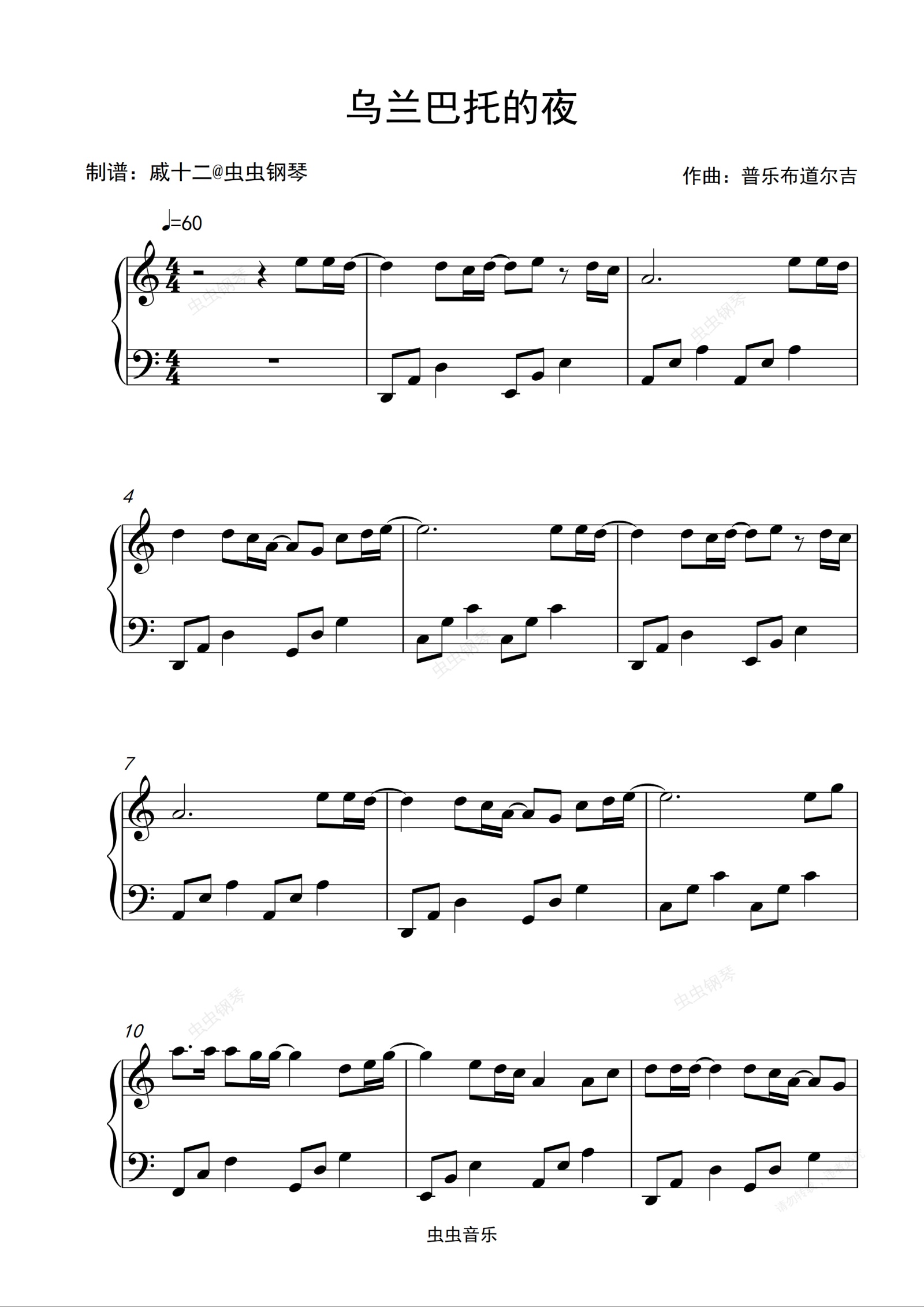 钢琴谱:乌兰巴托的夜-C调简单版