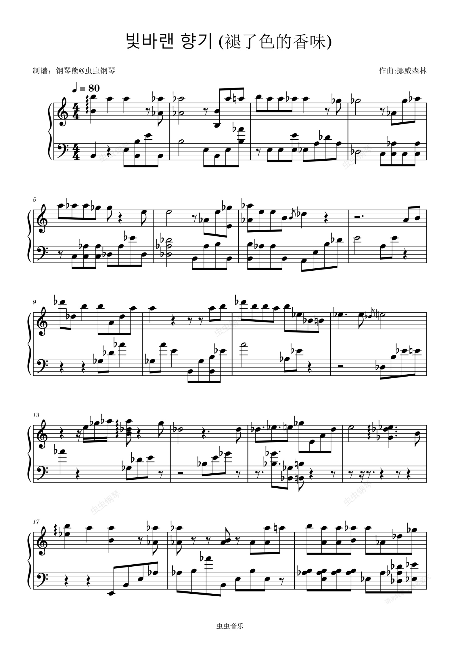 钢琴谱:빛바랜 향기 (褪了色的香味)挪威森林 极致感动的旋律!!!