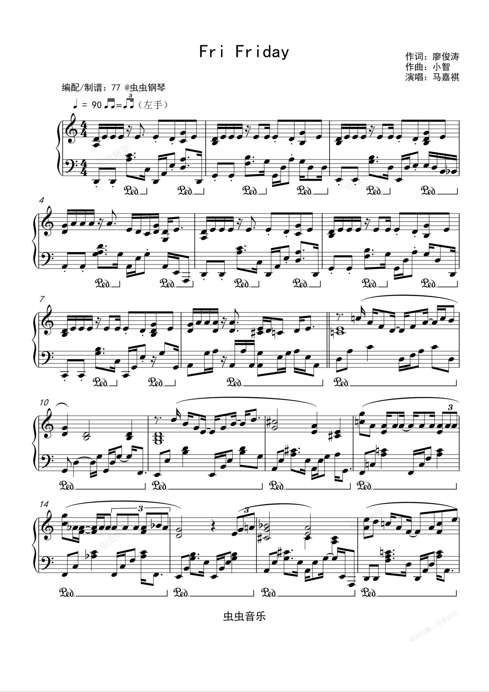 钢琴谱:马嘉祺-《Fri Friday》钢琴独奏谱 C调