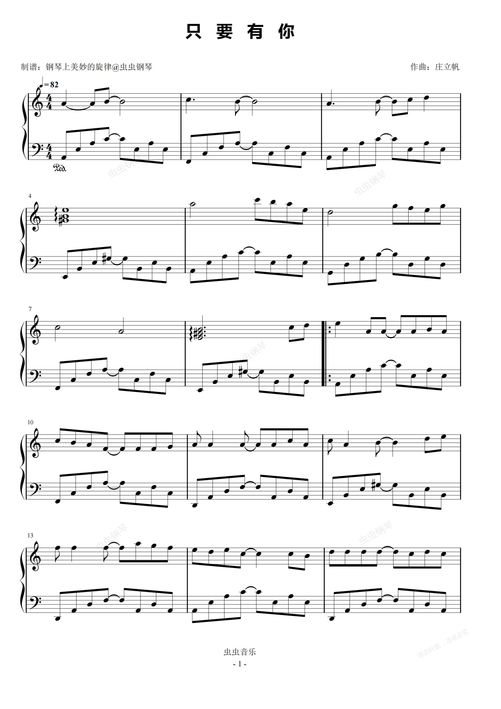 钢琴谱:只要有你 C调简易版 孙楠/那英 流行经典