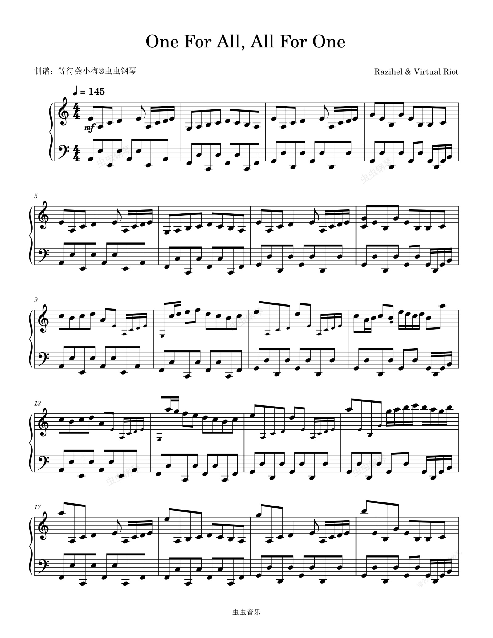 钢琴谱:One For All, All For One - Razihel /Virtual Riot