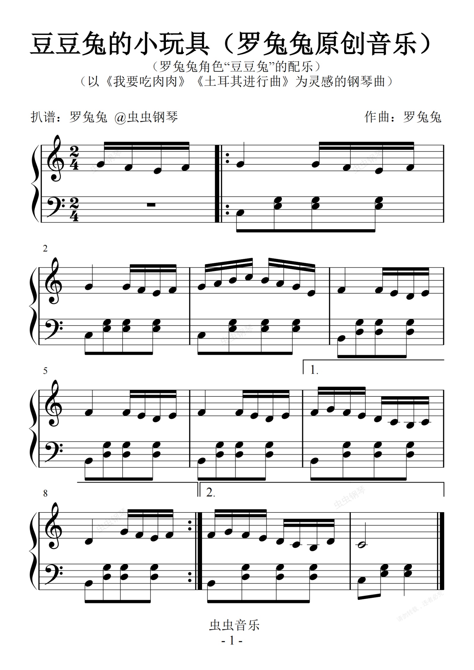 钢琴谱:豆豆兔的小玩具(罗兔兔原创音乐)(罗兔兔角色“豆豆兔”的配乐)