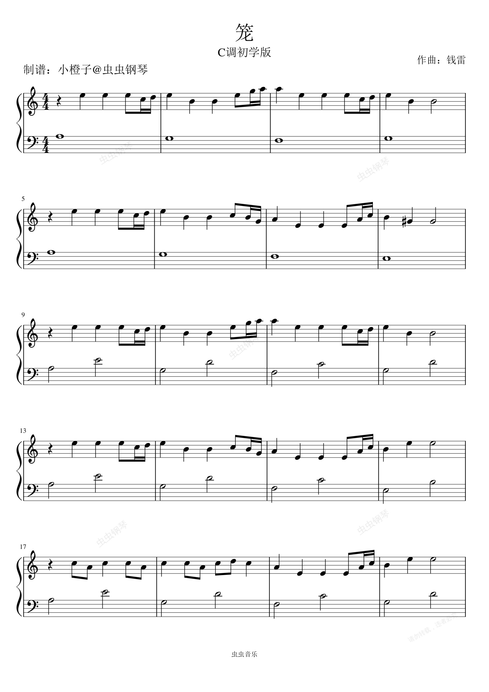 钢琴谱:⟪笼⟫C调巨简单版+拜厄难度