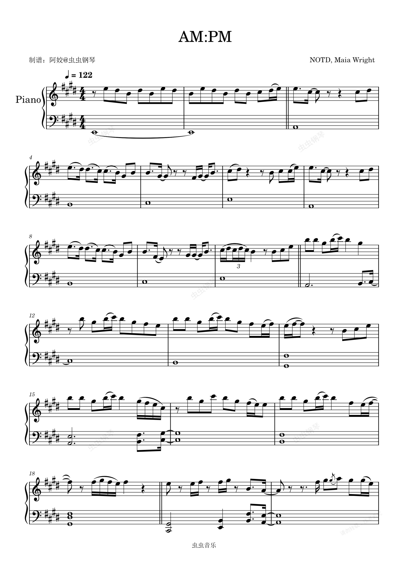 钢琴谱:AM:PM - NOTD/Maia Wright