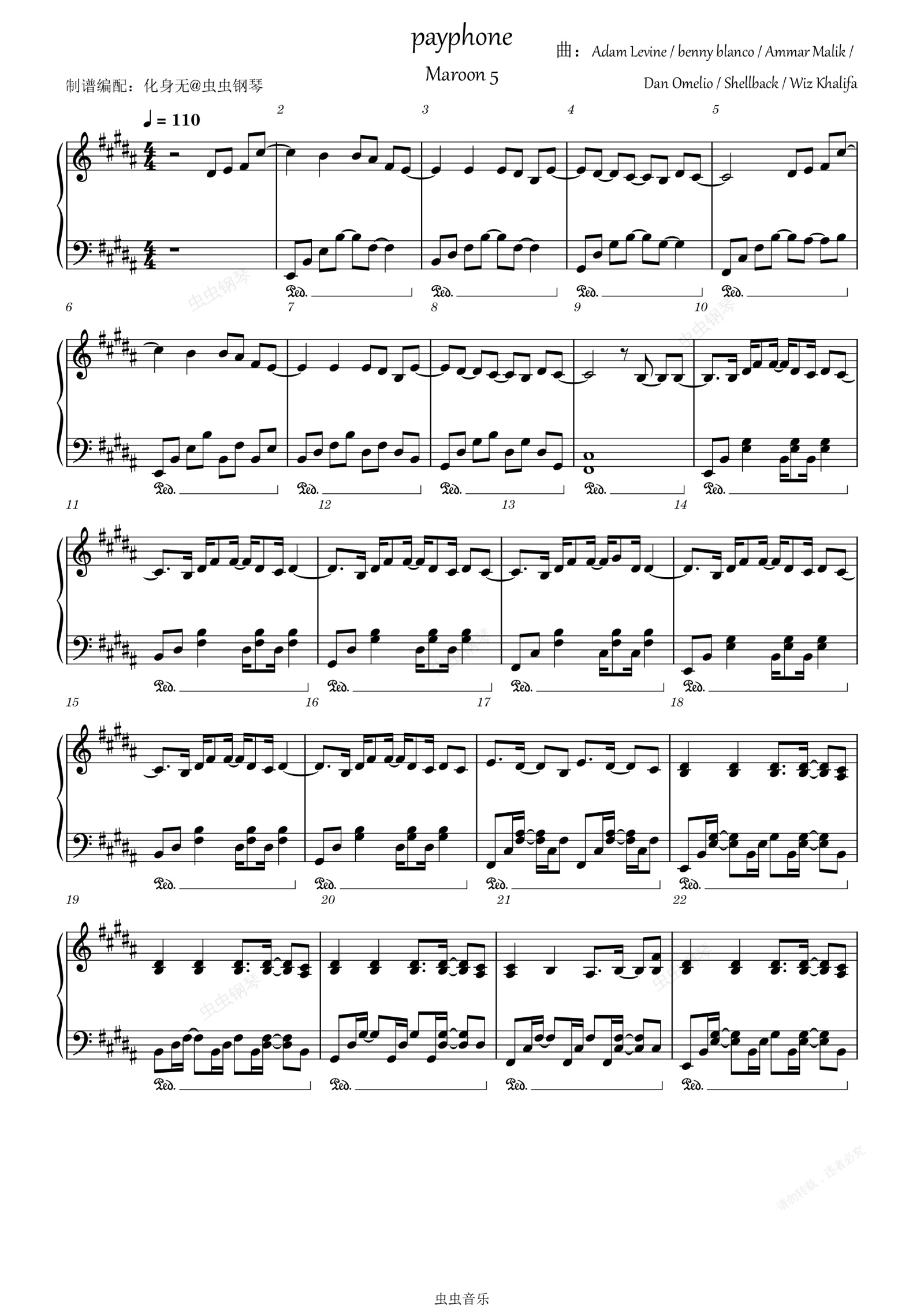 钢琴谱:Payphone 化身无编配 原调独奏版