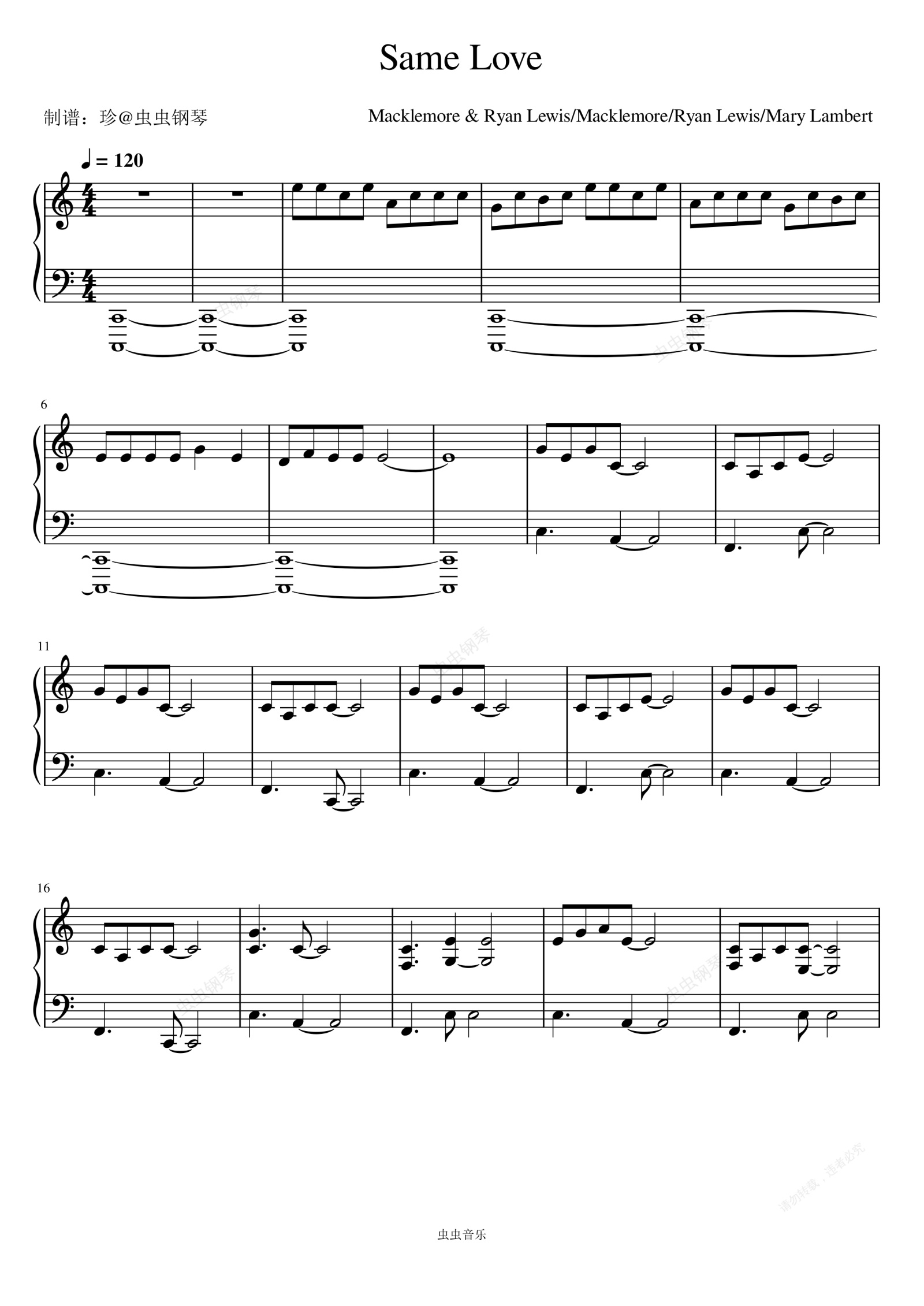 钢琴谱:Same Love - Macklemore & Ryan Lewis/Macklemore/Ryan Lewis/Mary Lambert