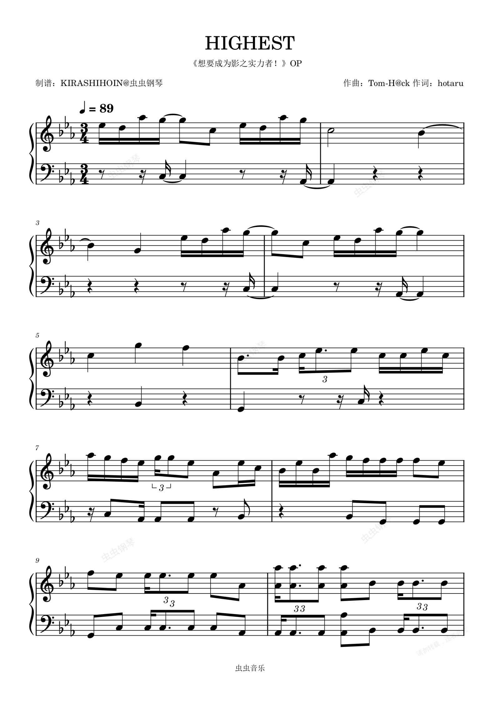 钢琴谱:HIGHEST(《想要成为影之实力者!》OP/片头曲)- OxT