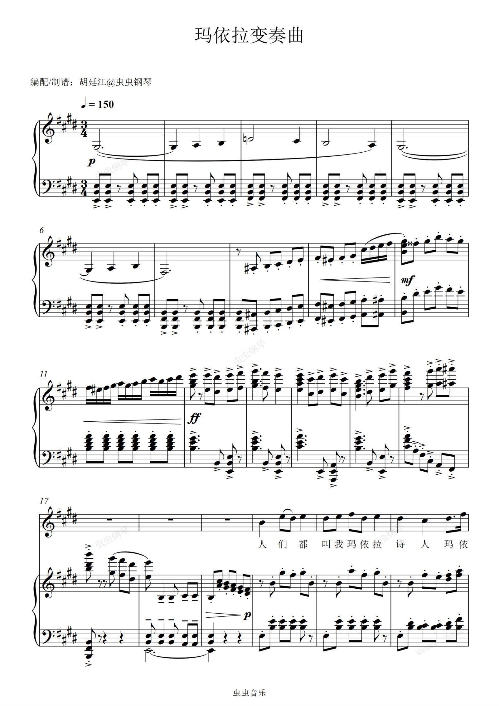 钢琴谱:玛依拉变奏曲—完整曲谱