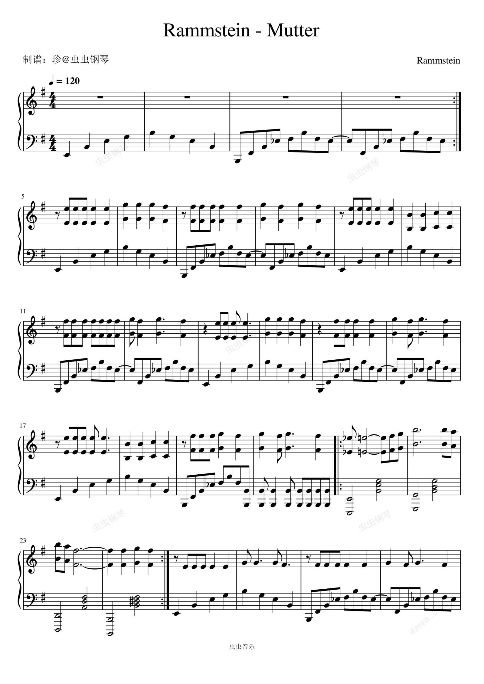 钢琴谱:Mutter - Rammstein