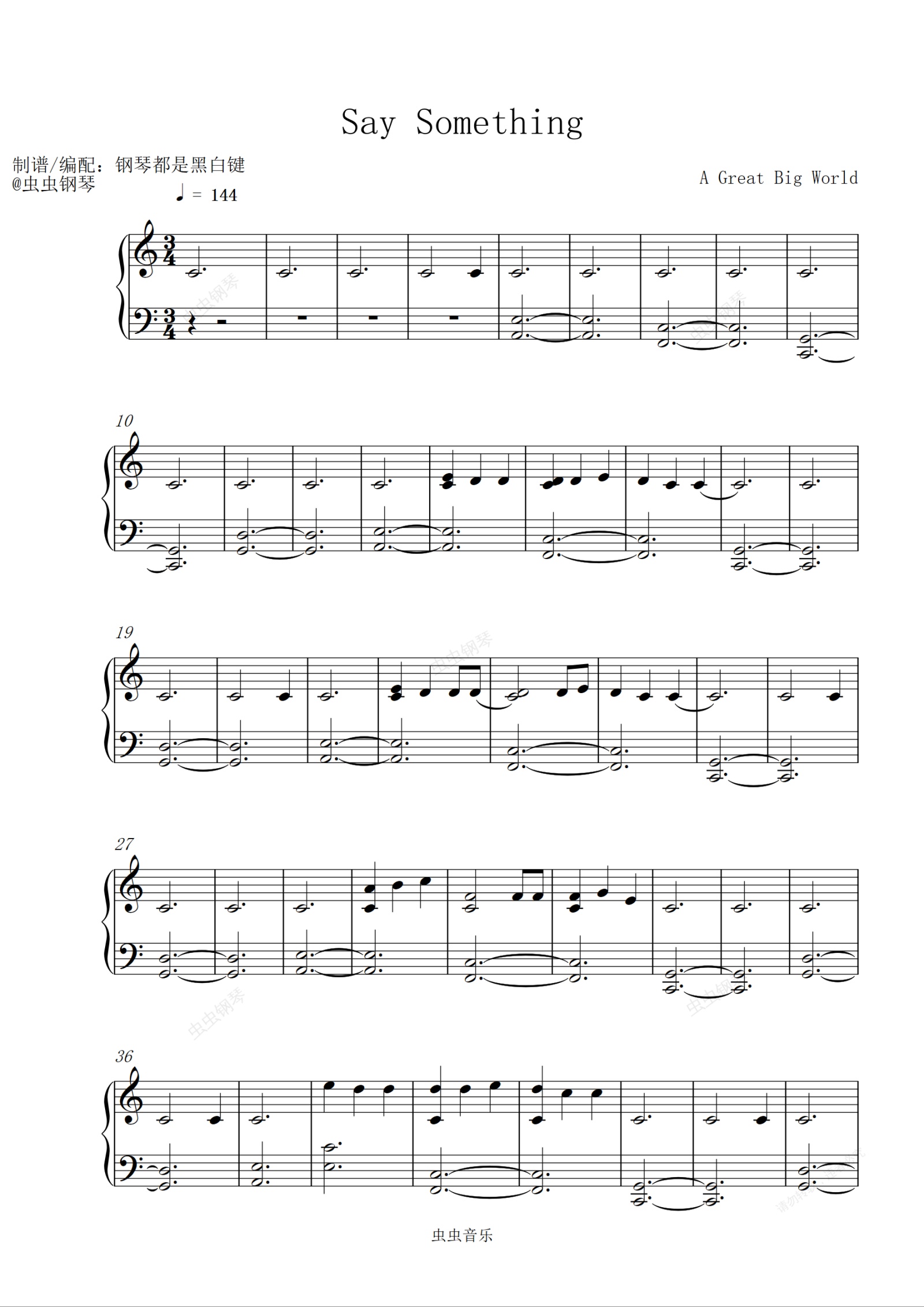 钢琴谱:Say Something钢琴独奏 孤独感【钢琴】