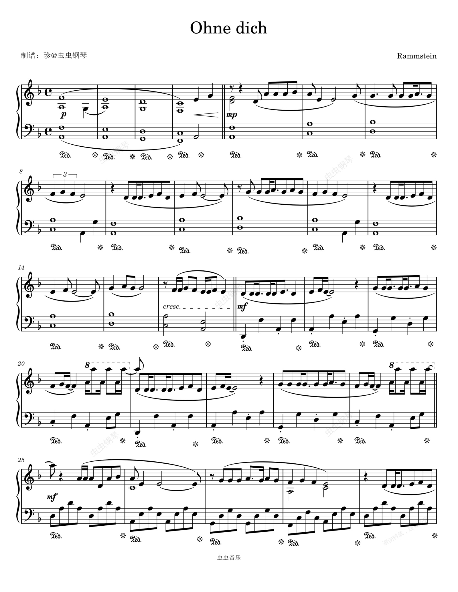 钢琴谱:Ohne dich - Rammstein