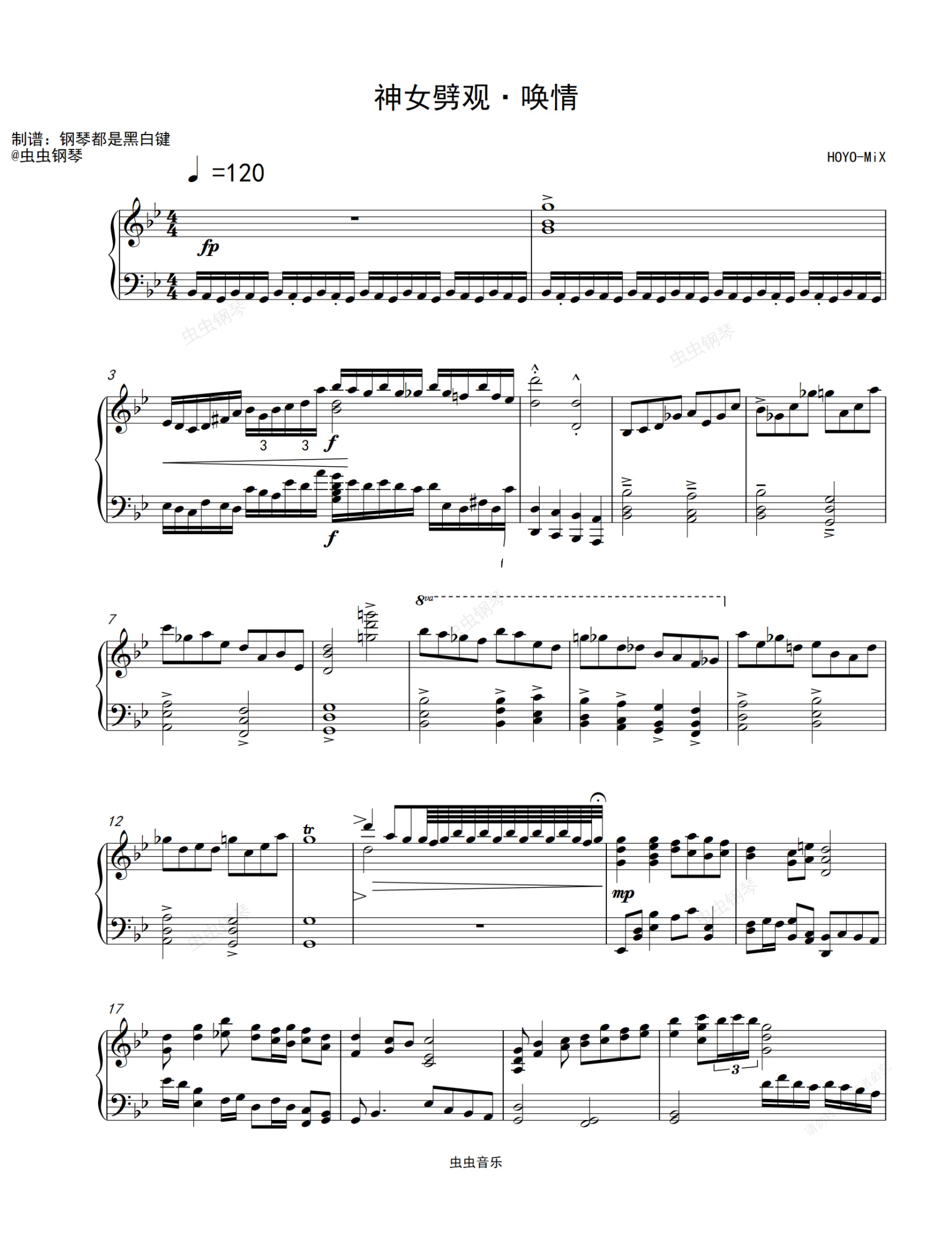 钢琴谱:「神女劈观」《原神》剧情PV 【爆燃演奏版】