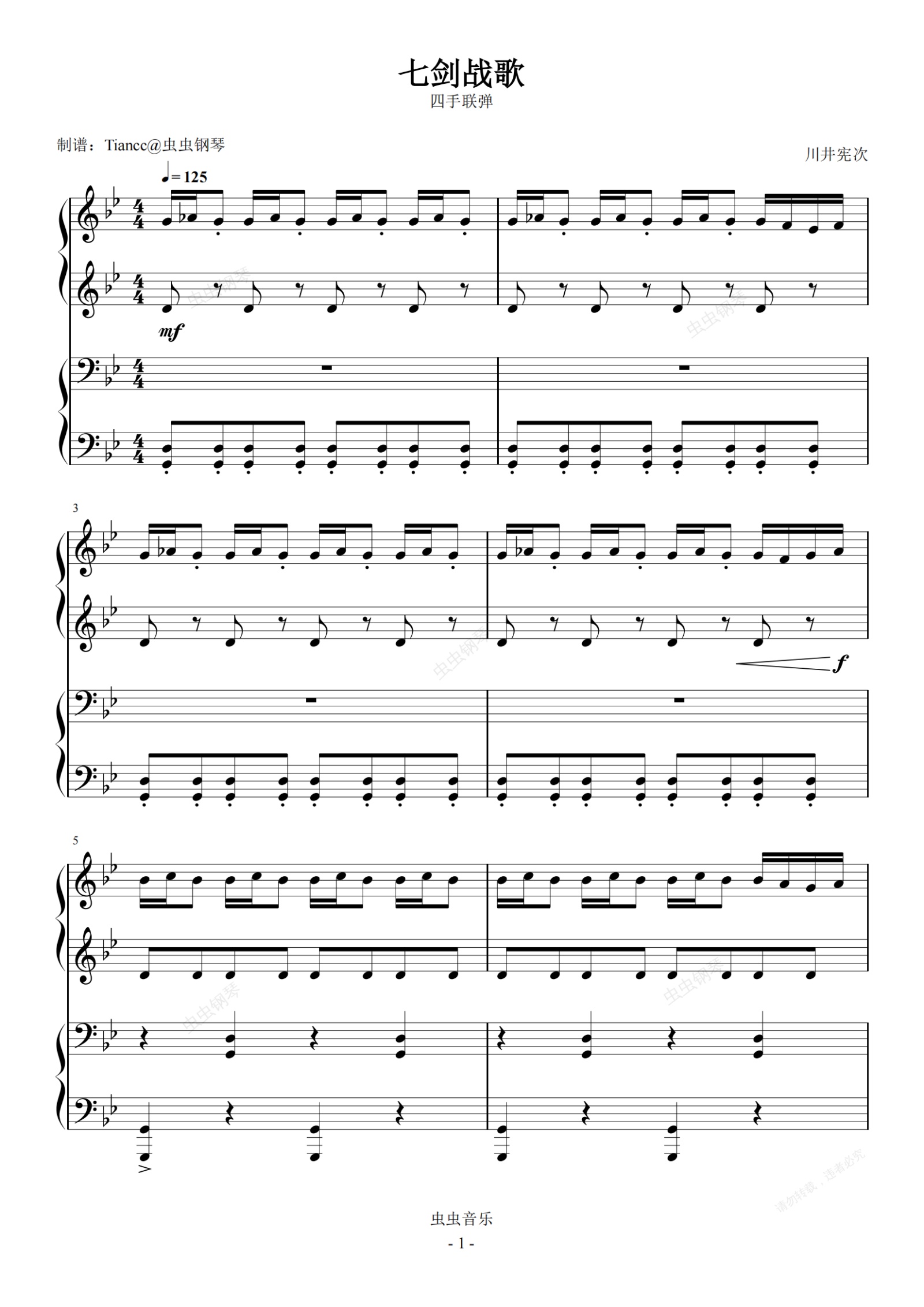 钢琴谱:《七剑战歌》超燃四手联弹,经典战歌