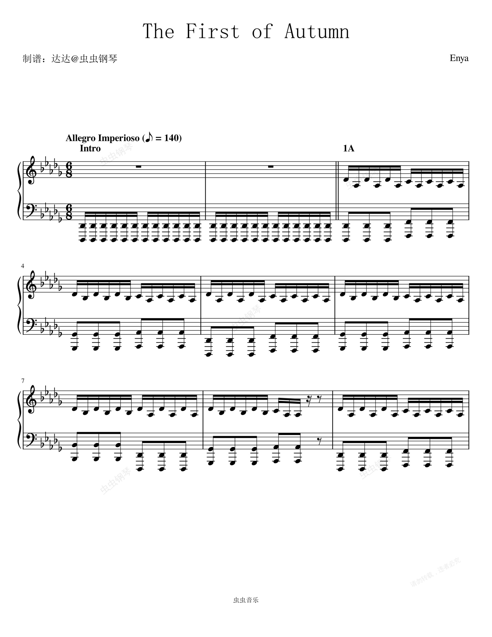 钢琴谱:The First of Autumn - Enya