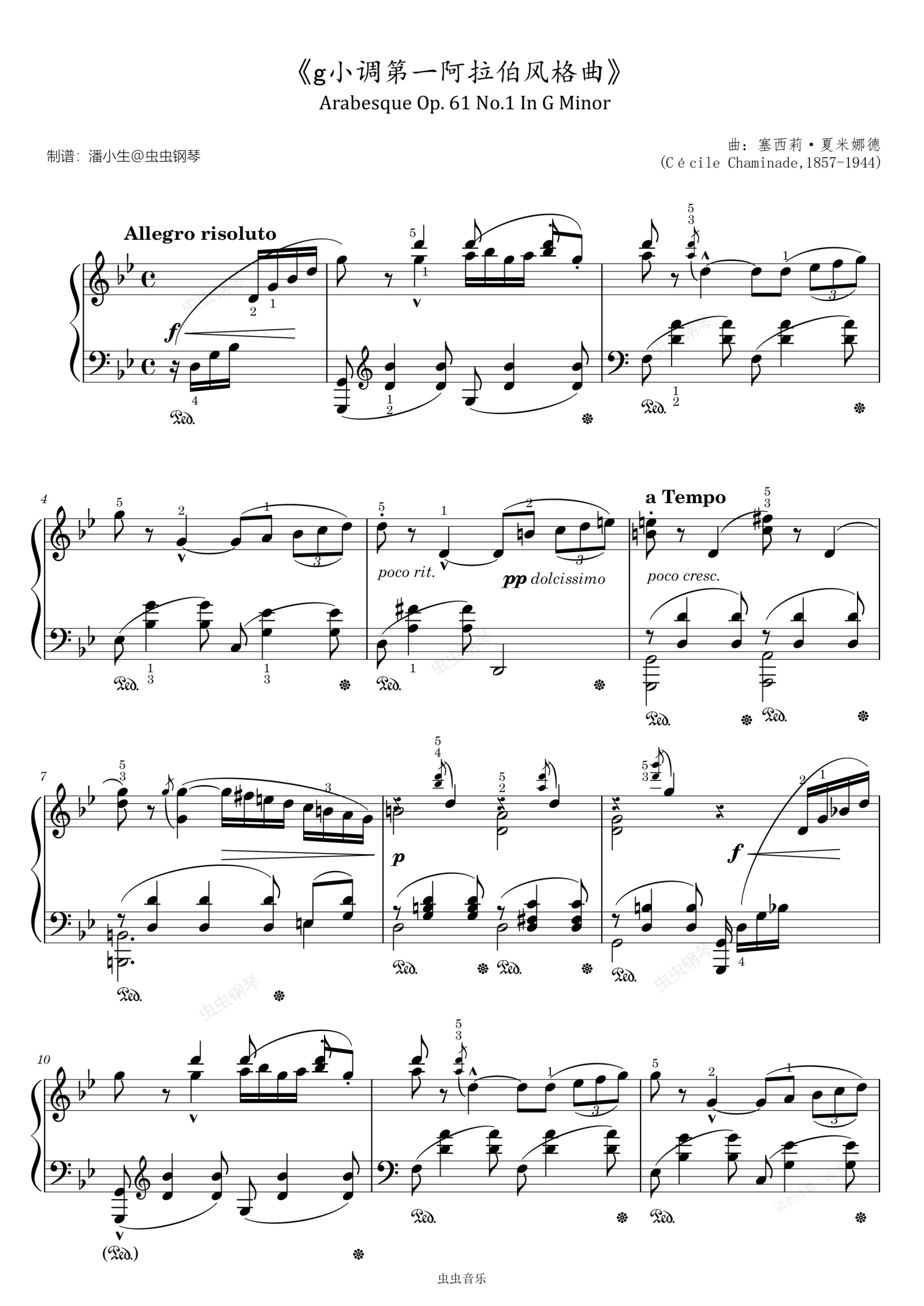 钢琴谱:夏米娜德《g小调第一阿拉伯风格曲》原版带指法 Arabesque No.1 In G Minor Op.61