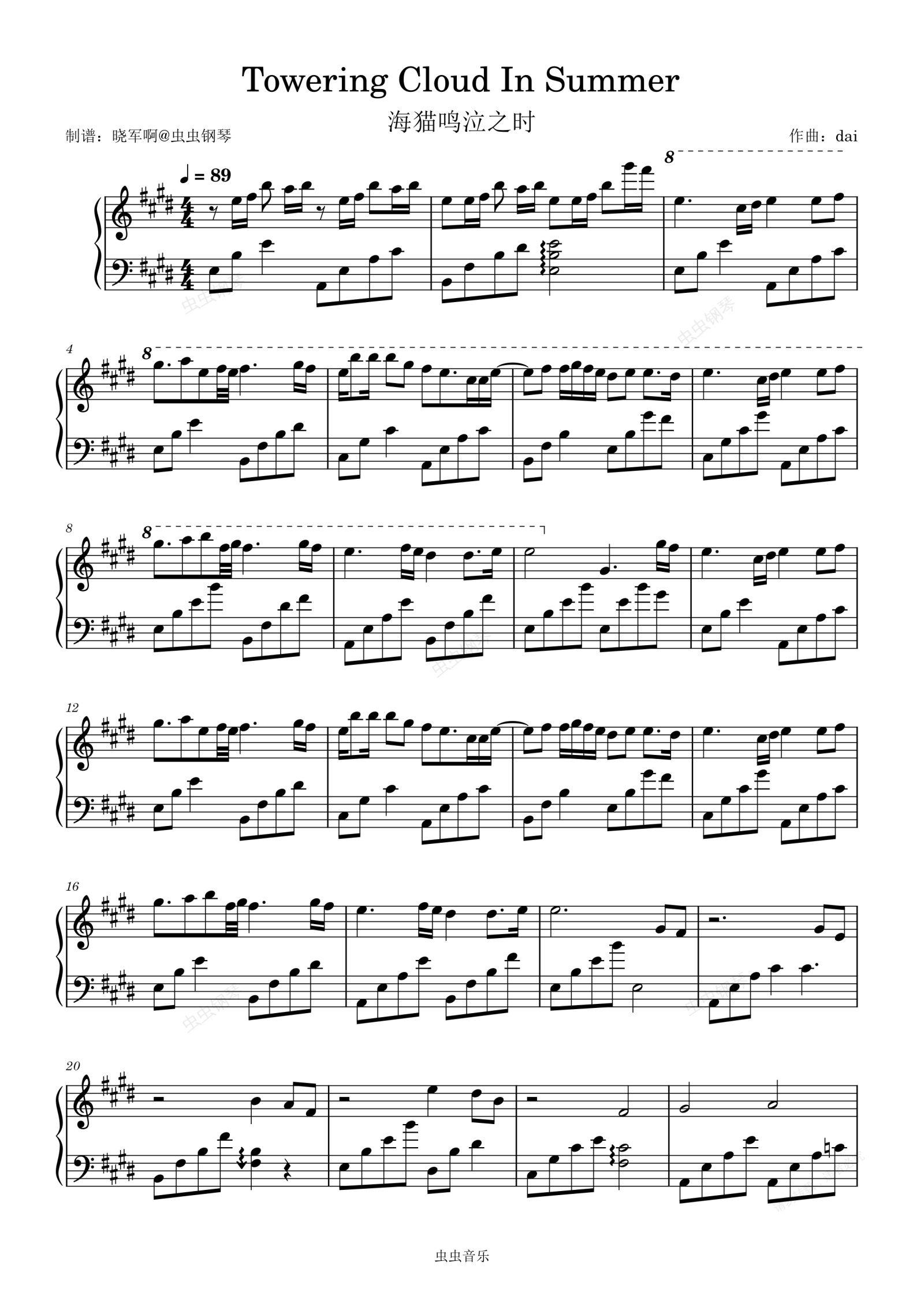 钢琴谱:【海猫鸣泣之时】Towering Cloud In Summer