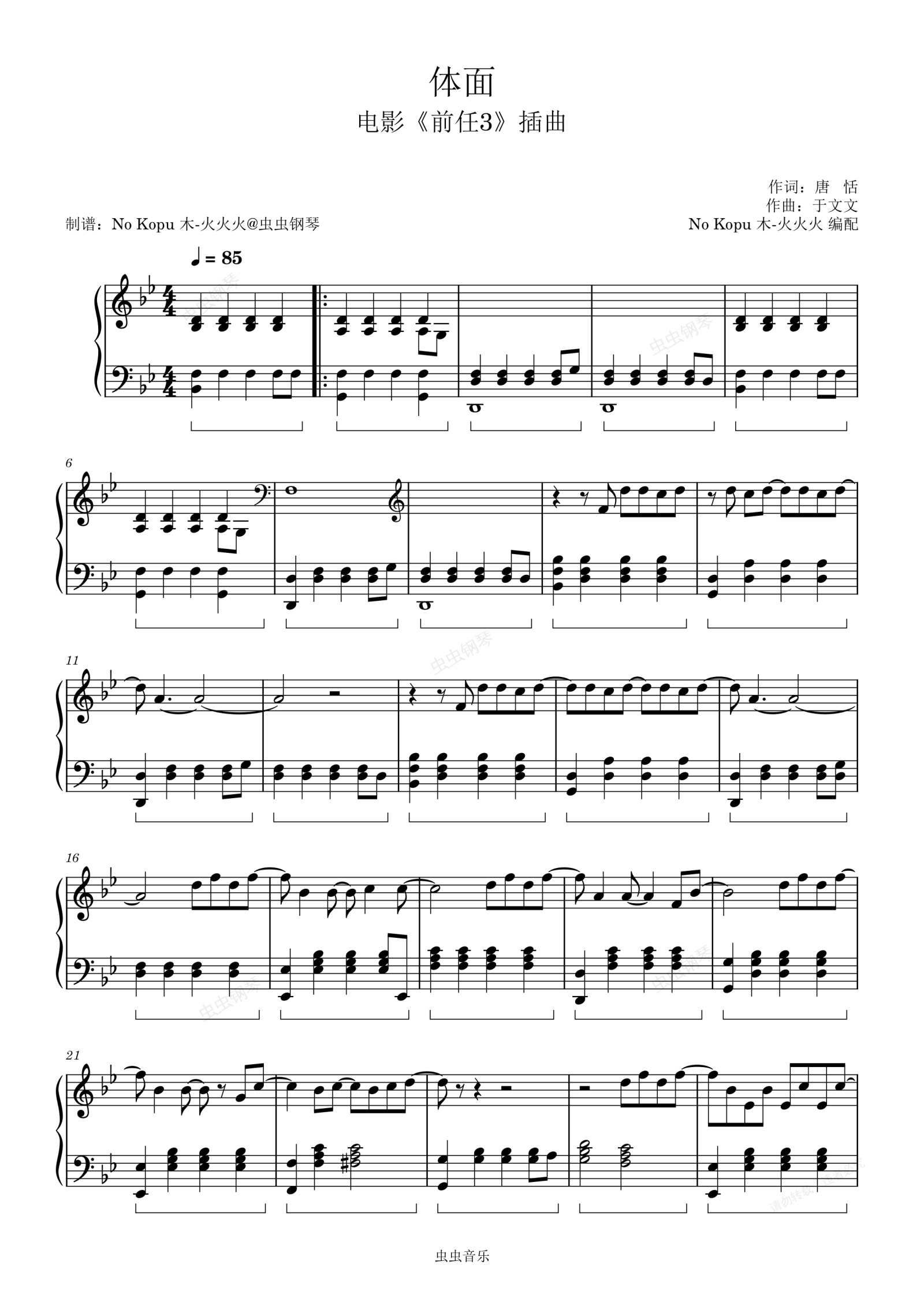 钢琴谱:bB精简《体面》电影《前任3》主题曲