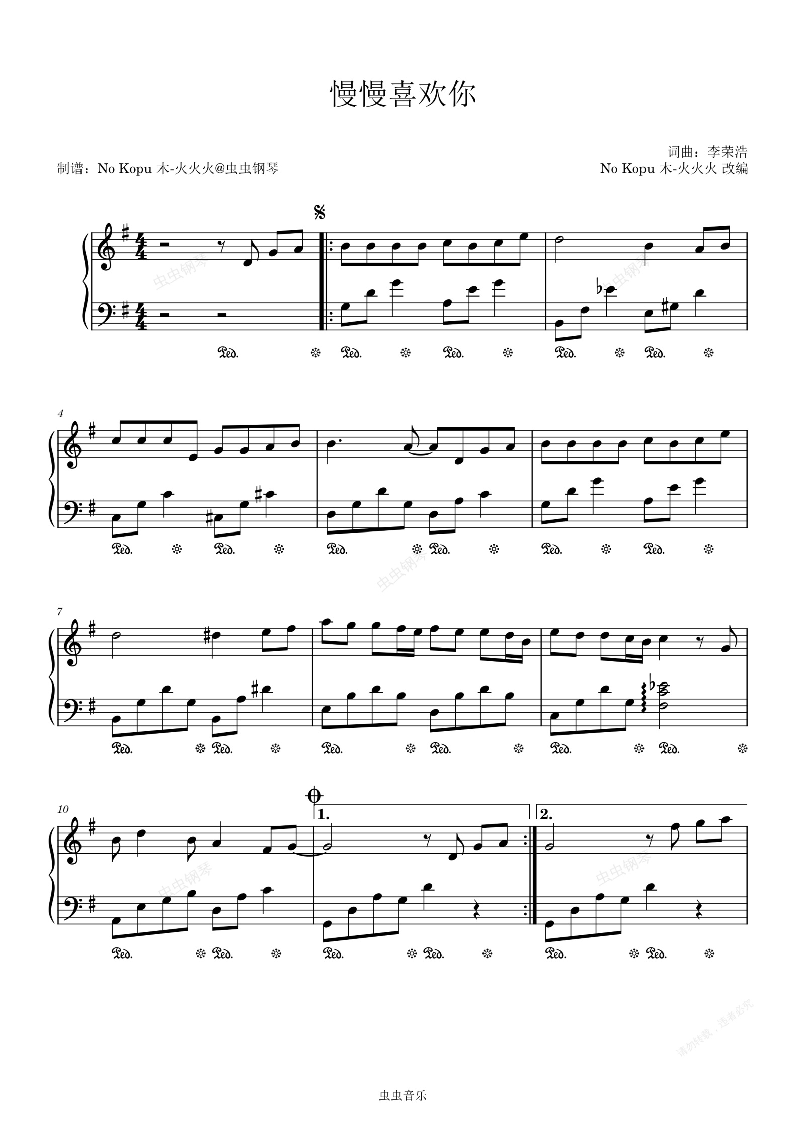 钢琴谱:G精简《慢慢喜欢你》-莫文蔚