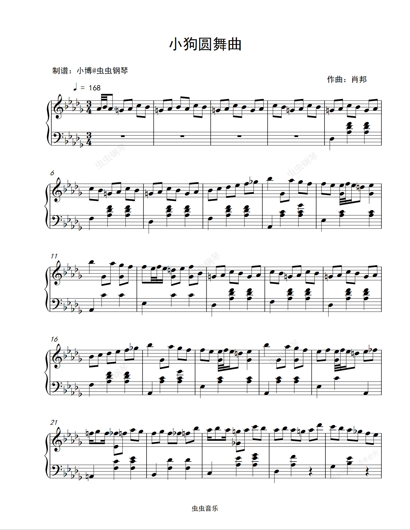 钢琴谱:小狗圆舞曲-降D大调圆舞曲-肖邦