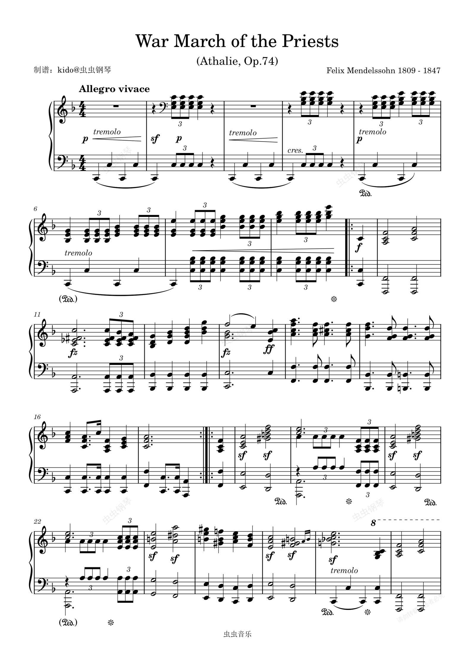 钢琴谱:War March of the Priests from Athalie,Op.74 Felix Mendelssohn 1809 - 1847