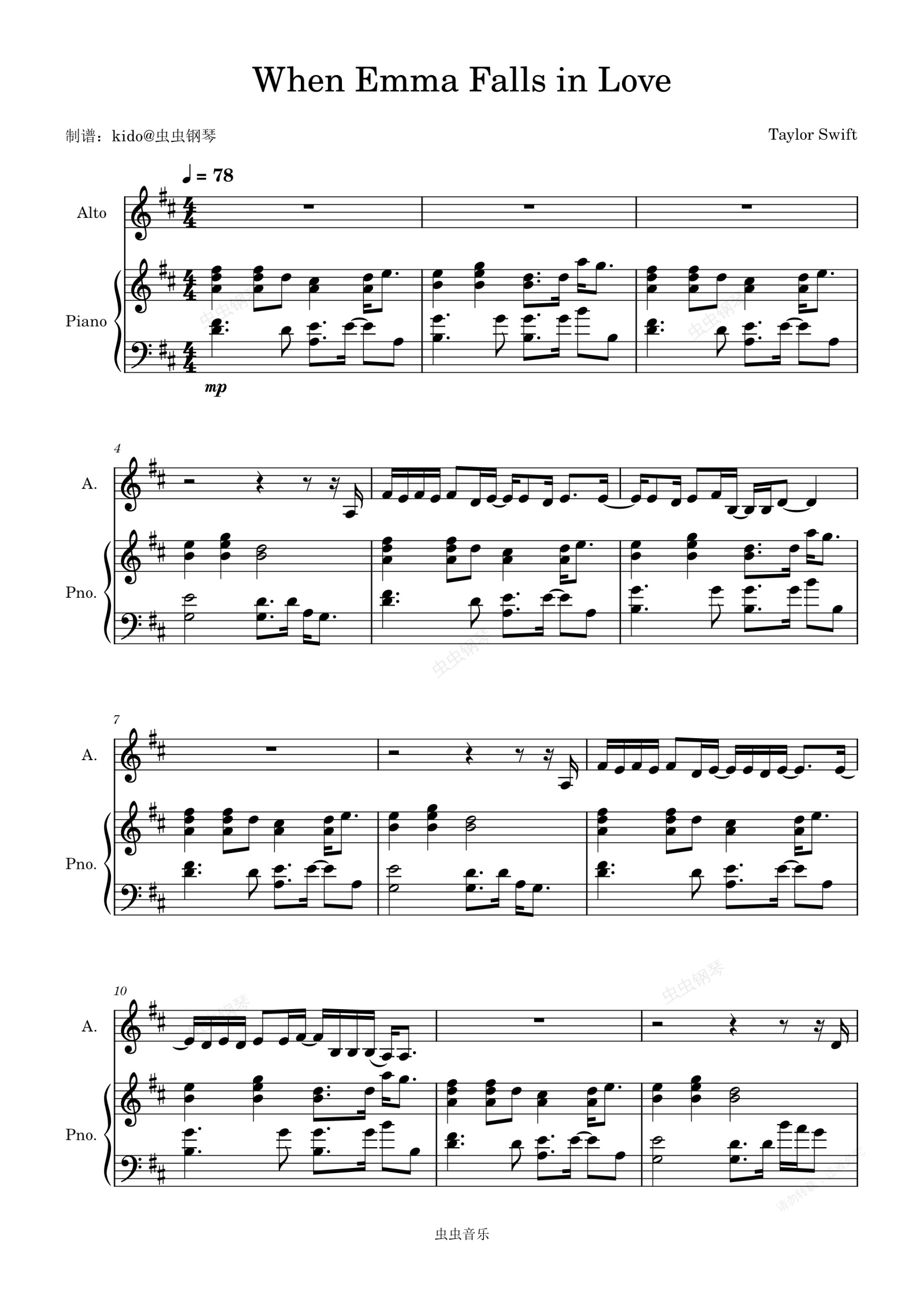 钢琴谱:When Emma Falls in Love  (当艾玛坠入爱河)Taylor Swift