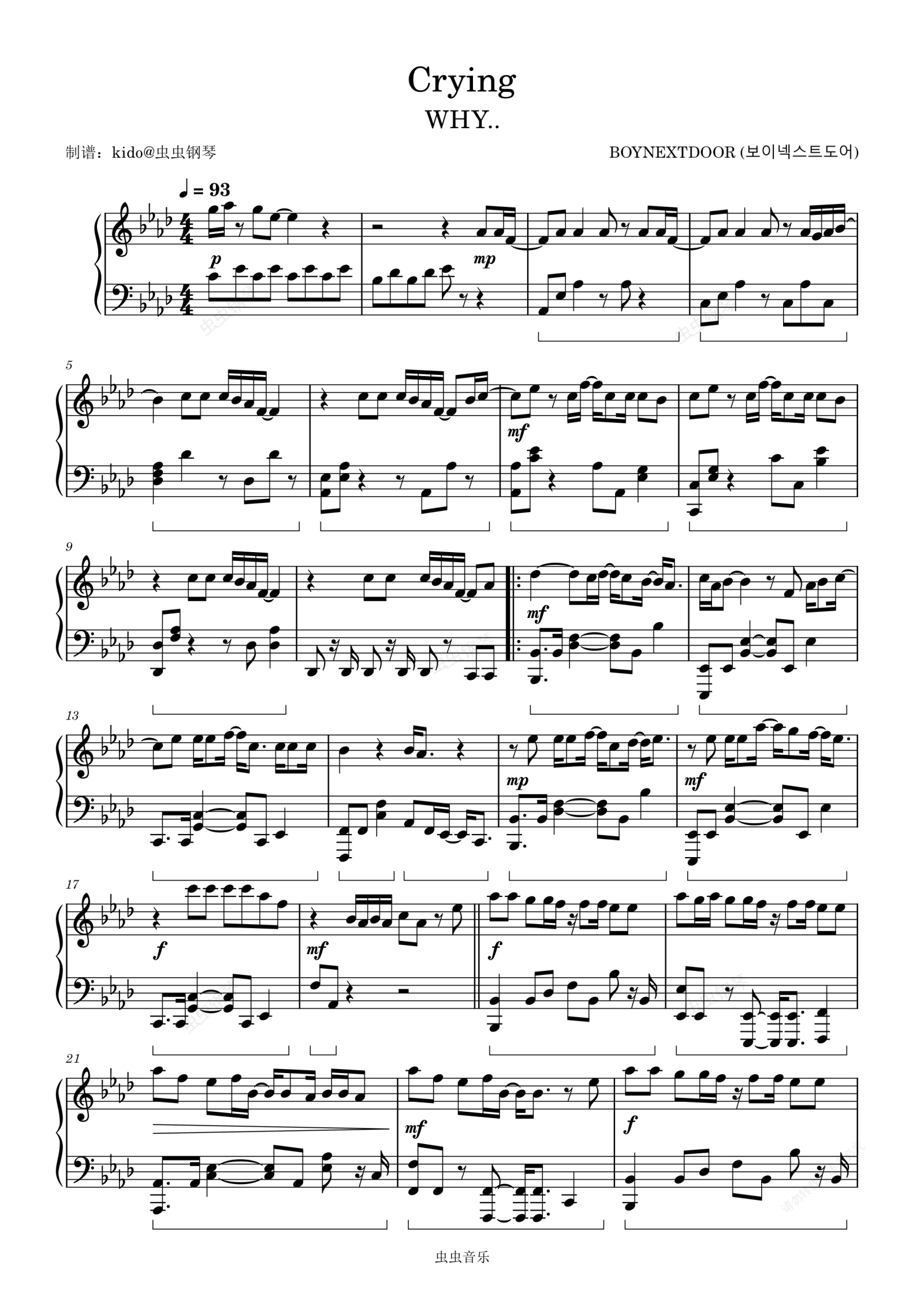 钢琴谱:Crying BOYNEXTDOOR (보이넥스트도어)