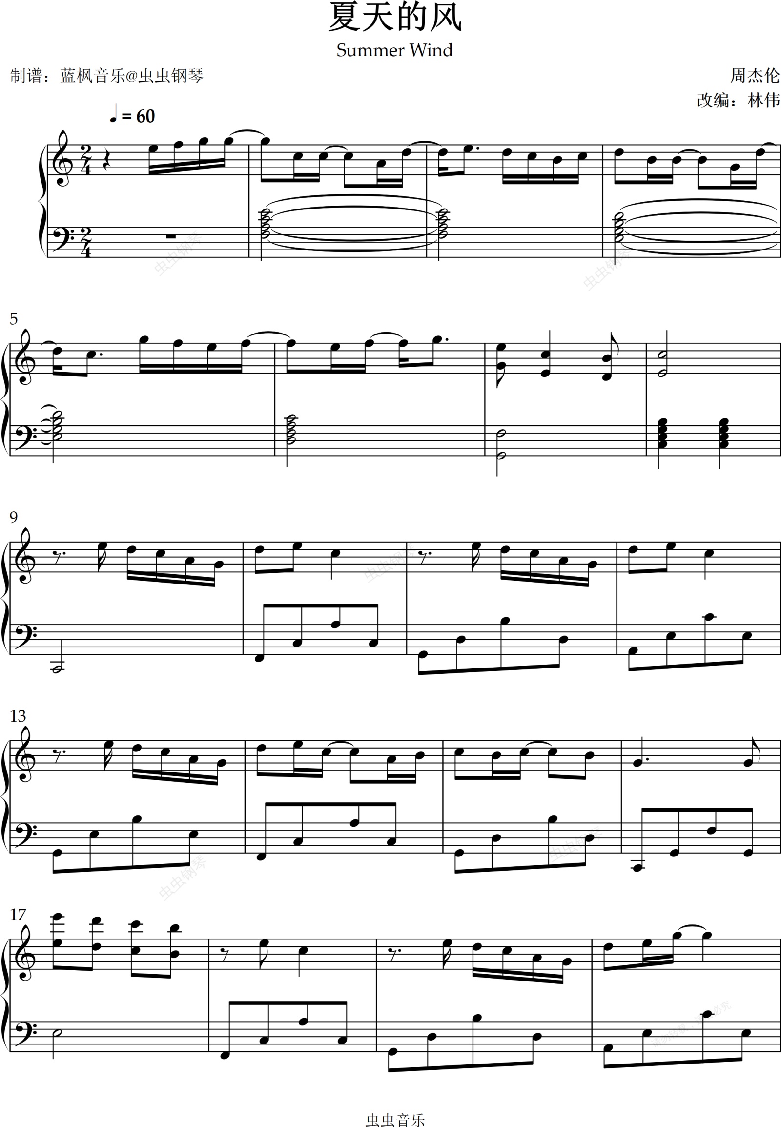 钢琴谱:夏天的风