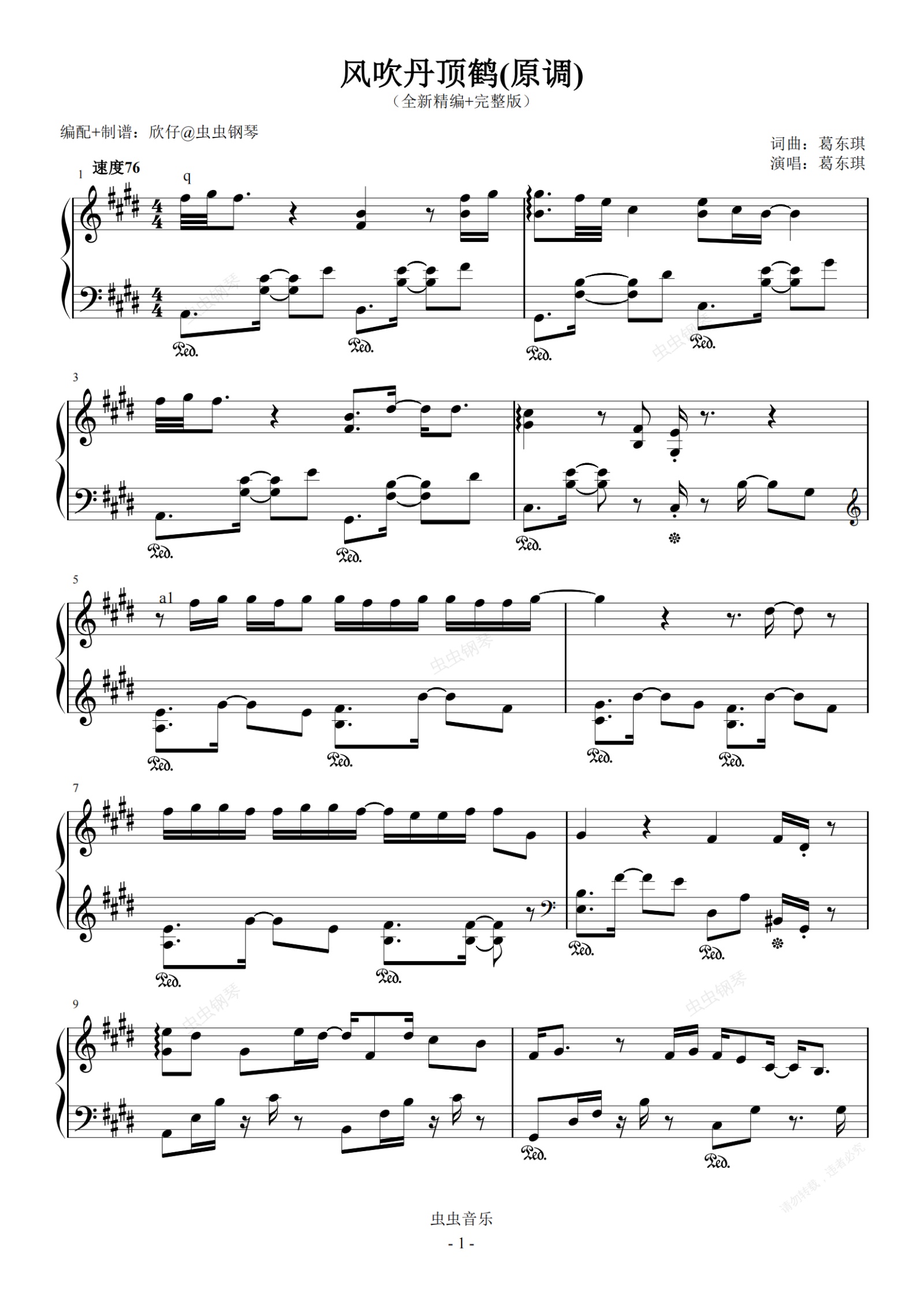 钢琴谱:葛东琪-E《风吹丹顶鹤》(全新精编+完整版)