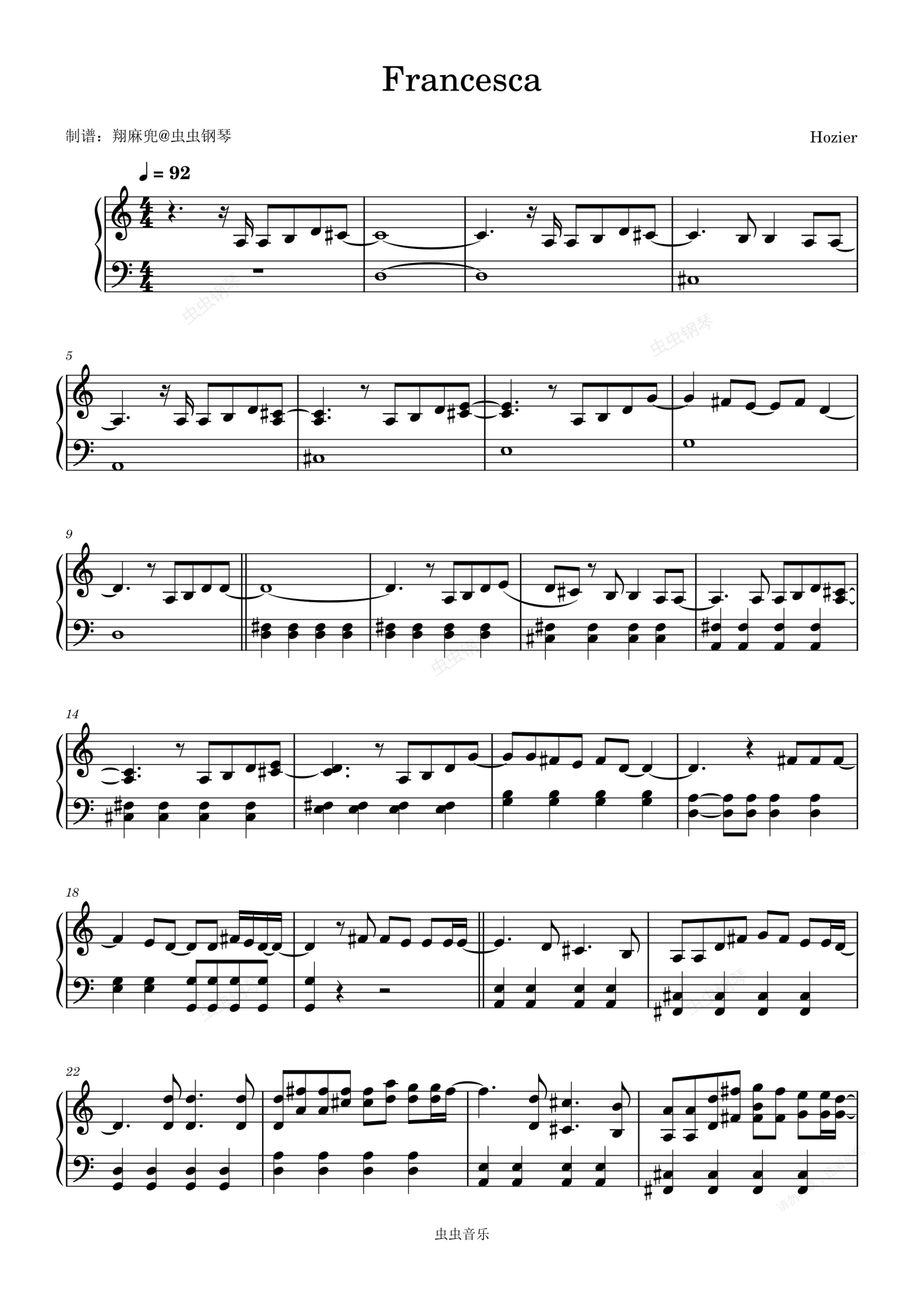 钢琴谱:Francesca - Hozier