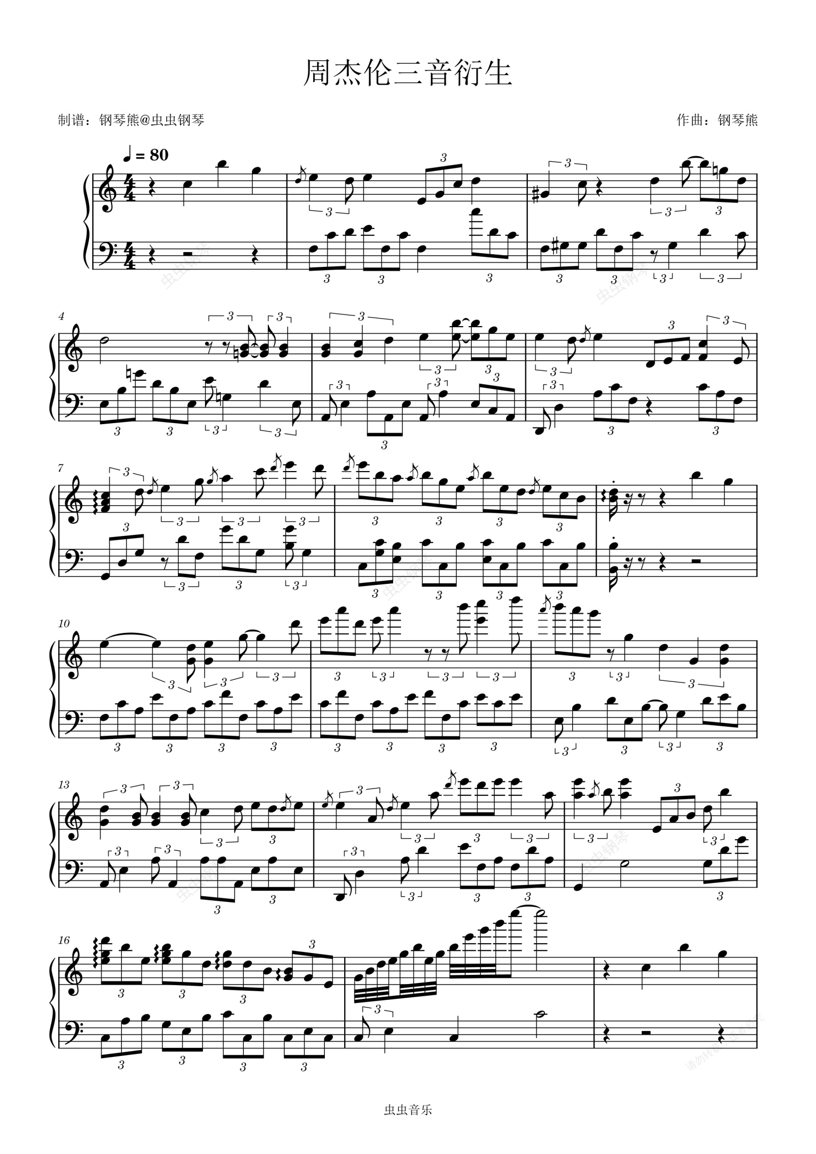 钢琴谱:周杰伦三音成曲 衍生