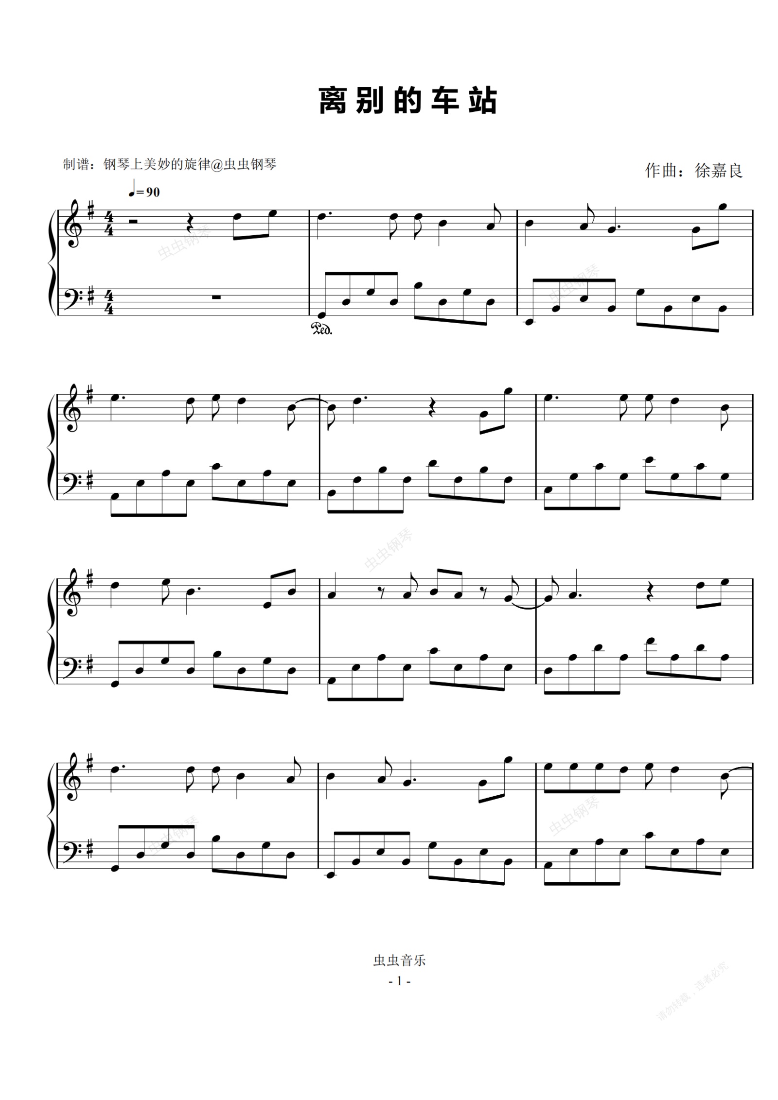 钢琴谱:离别的车站 原调简易版  孙露 经典流行