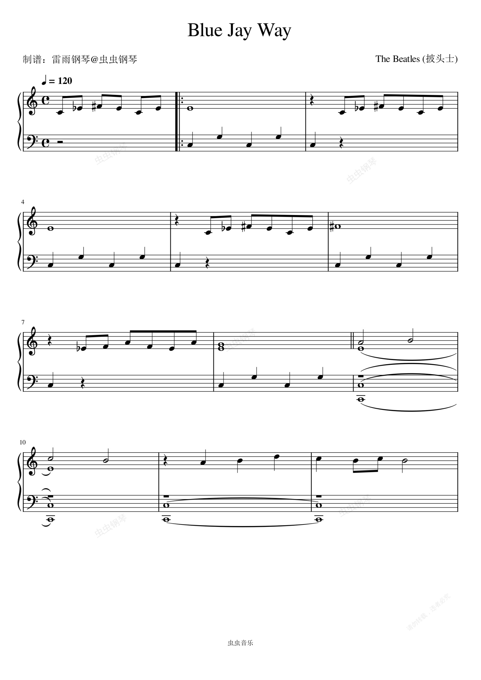 钢琴谱:Blue Jay Way (Remastered 2009) - The Beatles (披头士)