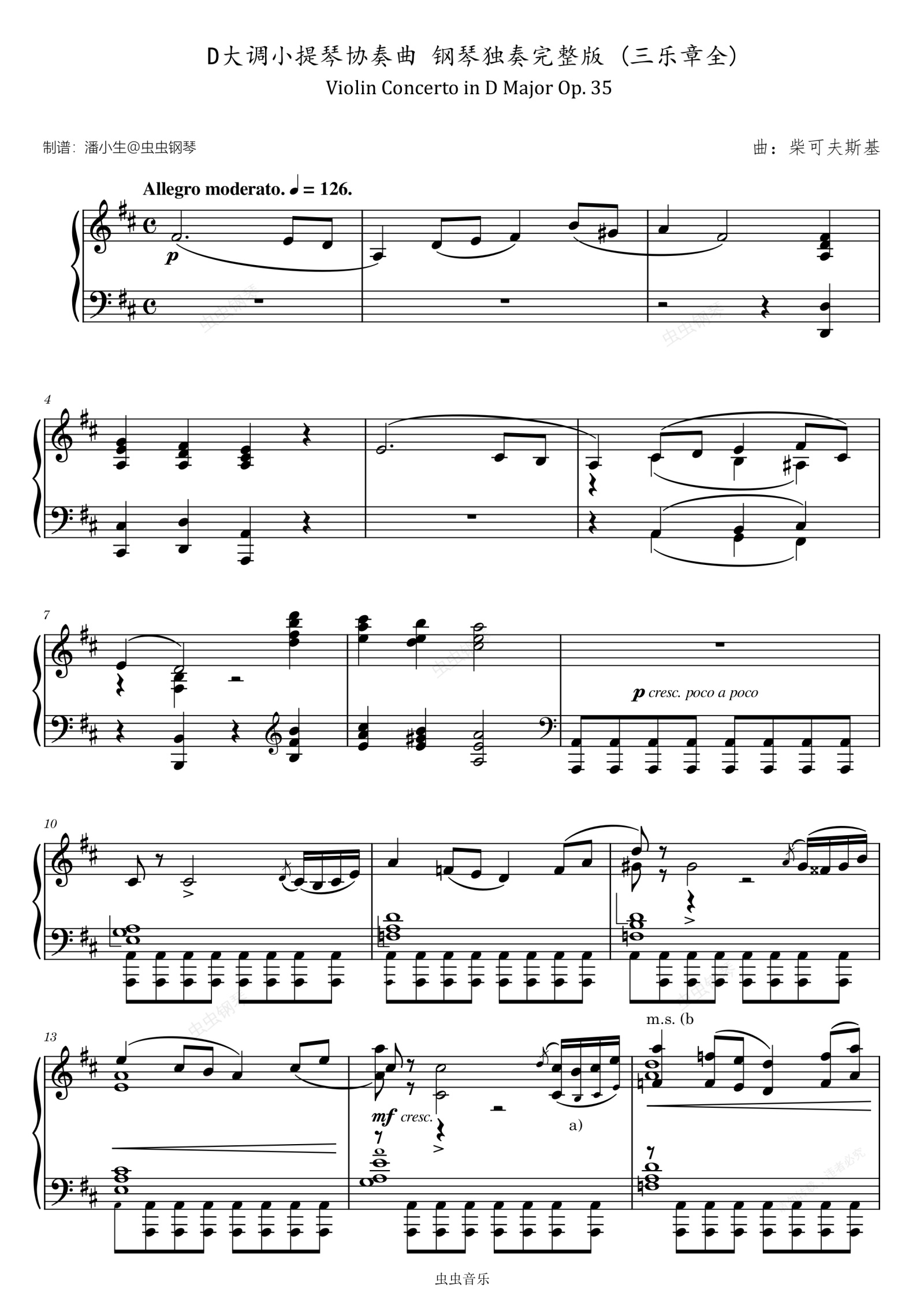 钢琴谱:柴可夫斯基 D大调小提琴协奏曲 Op.35 原版三乐章全 Violin Concerto in D major 钢琴独奏完整版