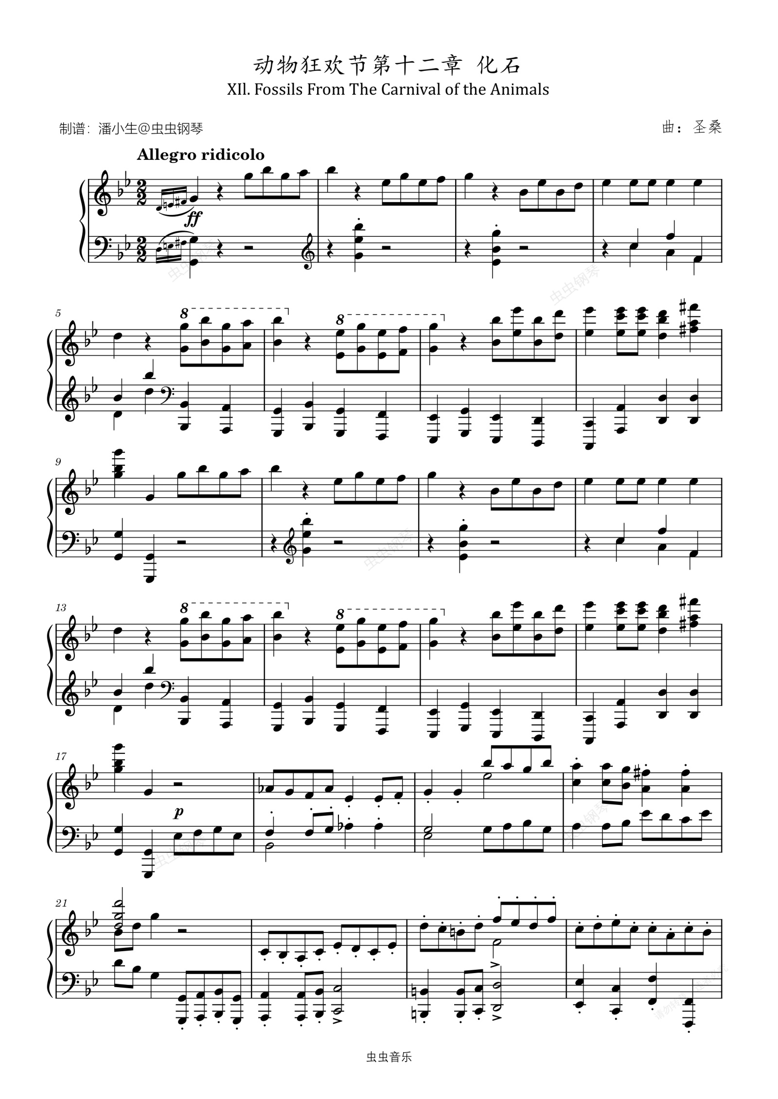 钢琴谱:圣桑 动物狂欢节 第十二章 化石 XIl. Fossils 原版钢琴独奏 From The Carnival of the Animals