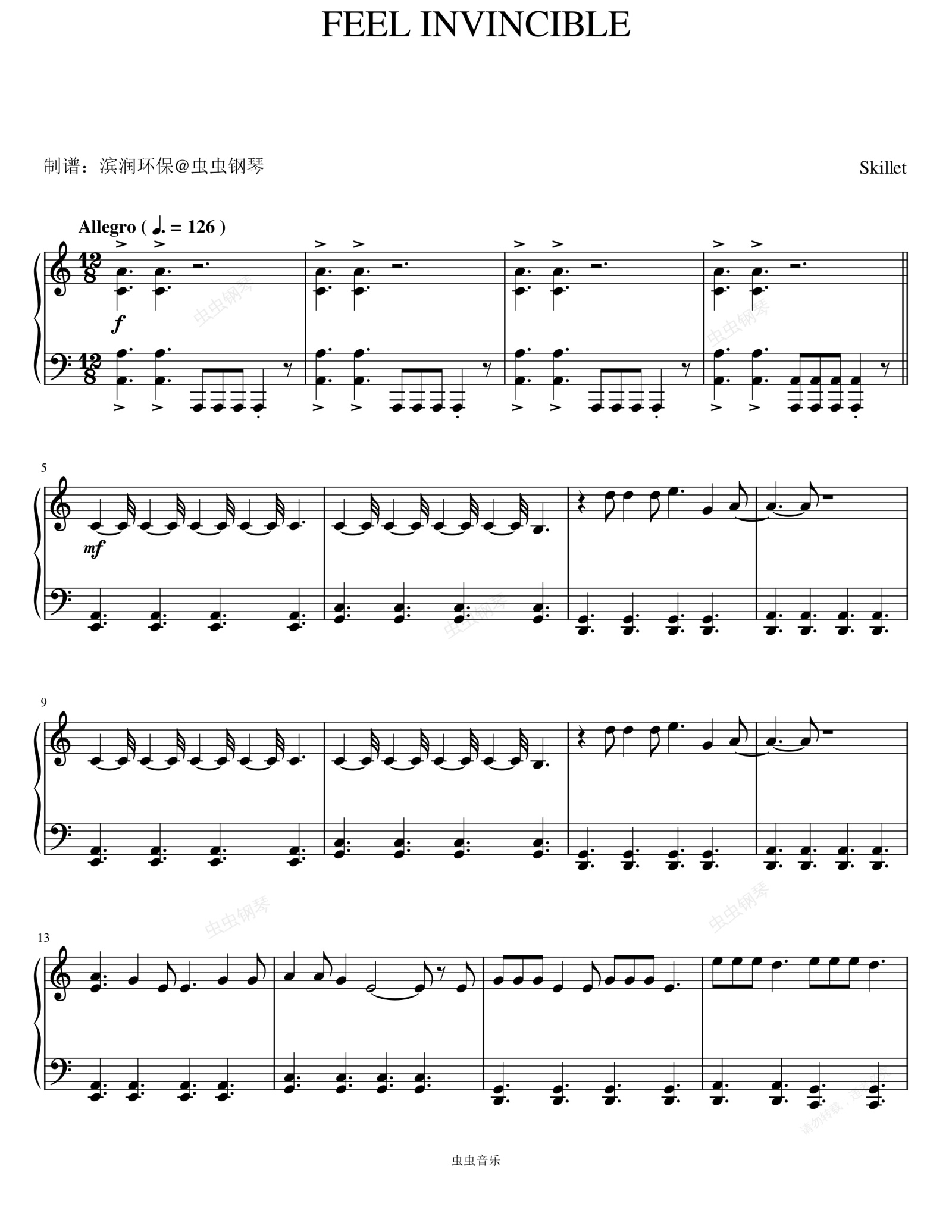 钢琴谱:Feel Invincible - Skillet