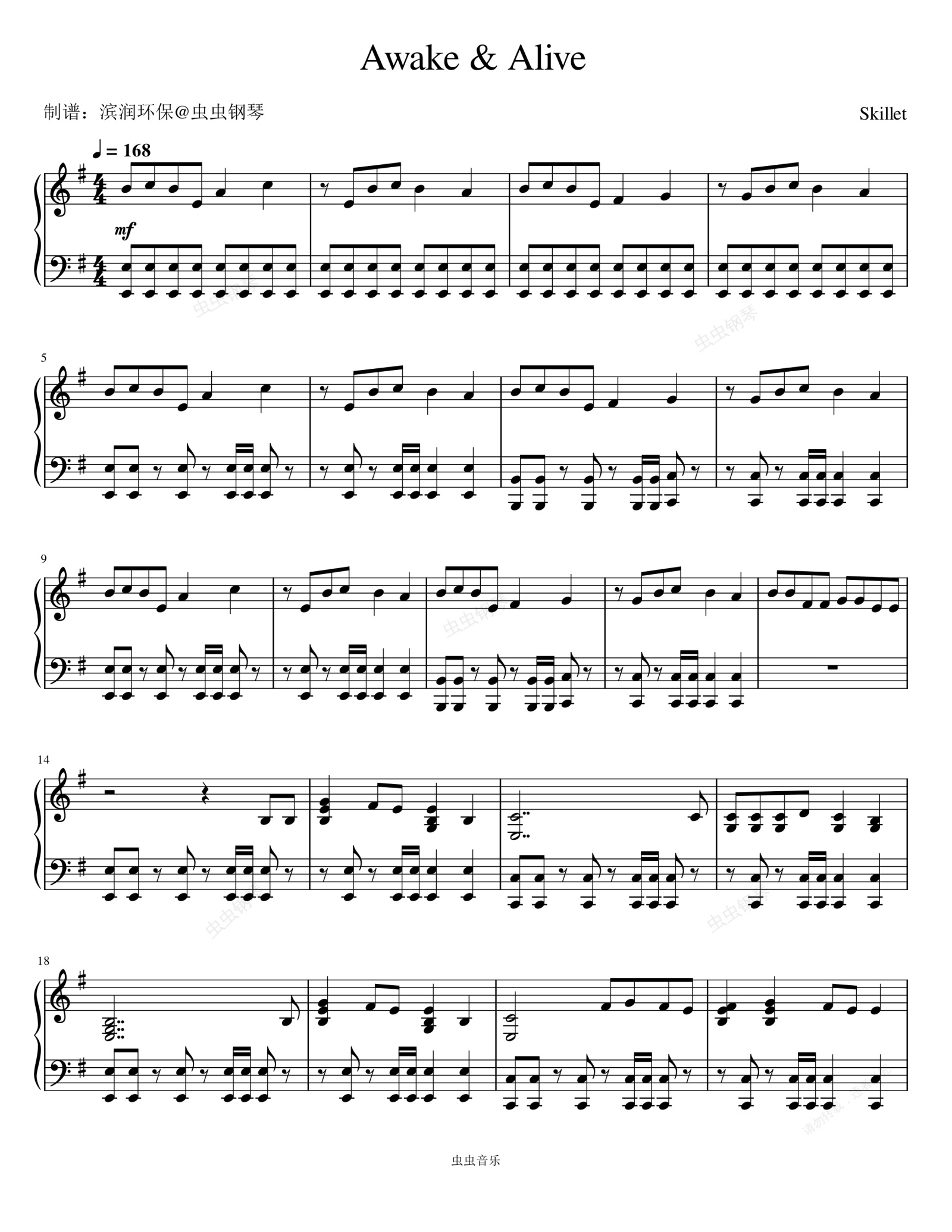 钢琴谱:Awake and Alive - Skillet