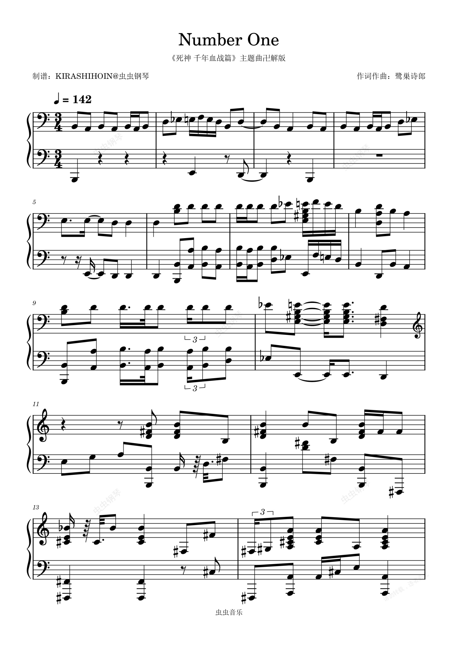 钢琴谱:Number One - Bankai(《死神 千年血战篇》主题曲卍解版)- 鹭巣诗郎