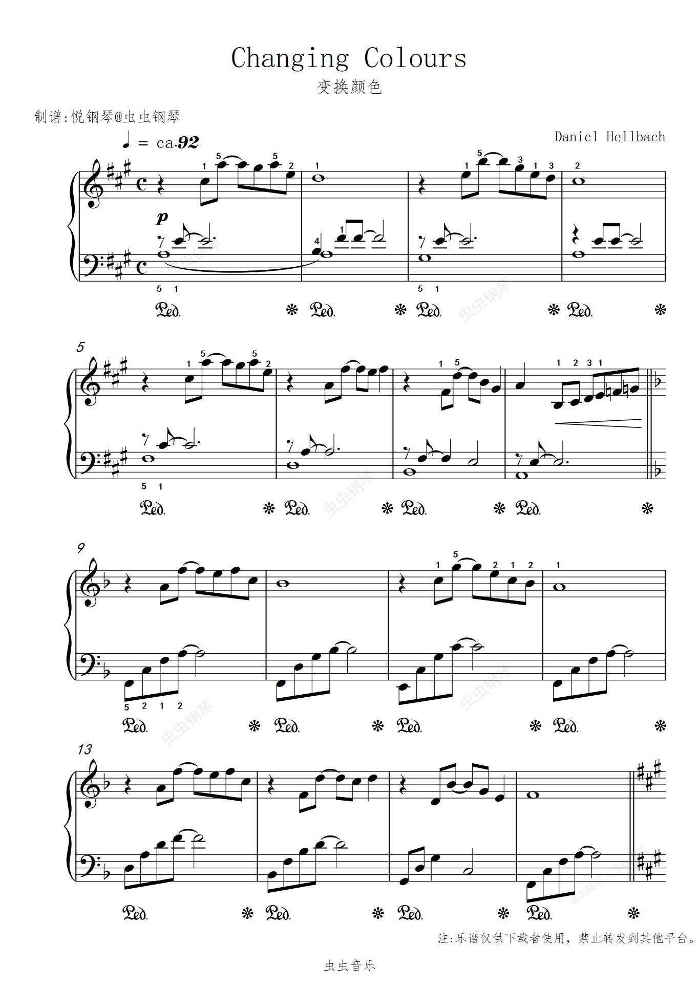 钢琴谱:变换颜色//Changing Colours【抒情-唯美】