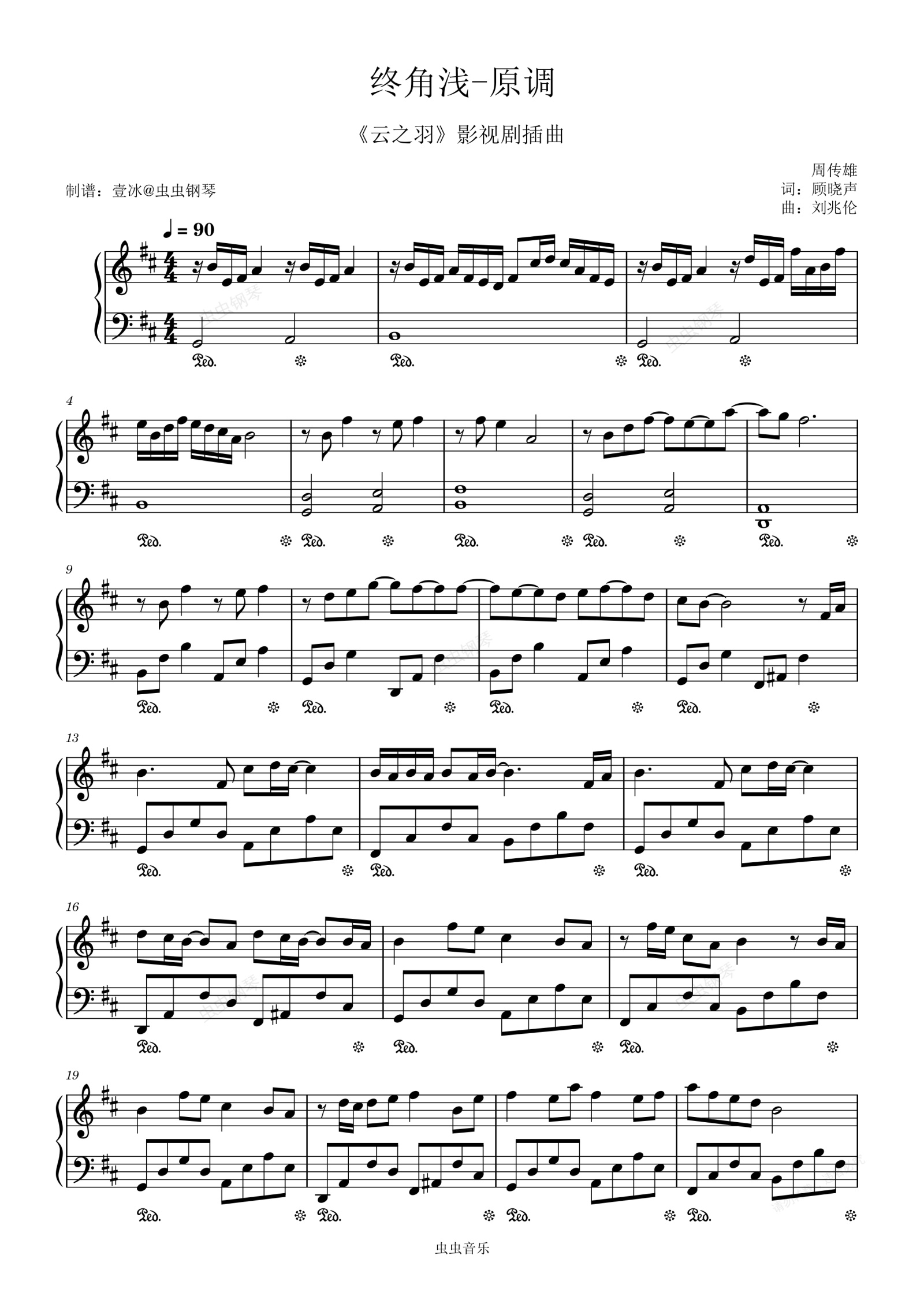 钢琴谱:终角浅 (《云之羽》影视剧插曲) - 原调