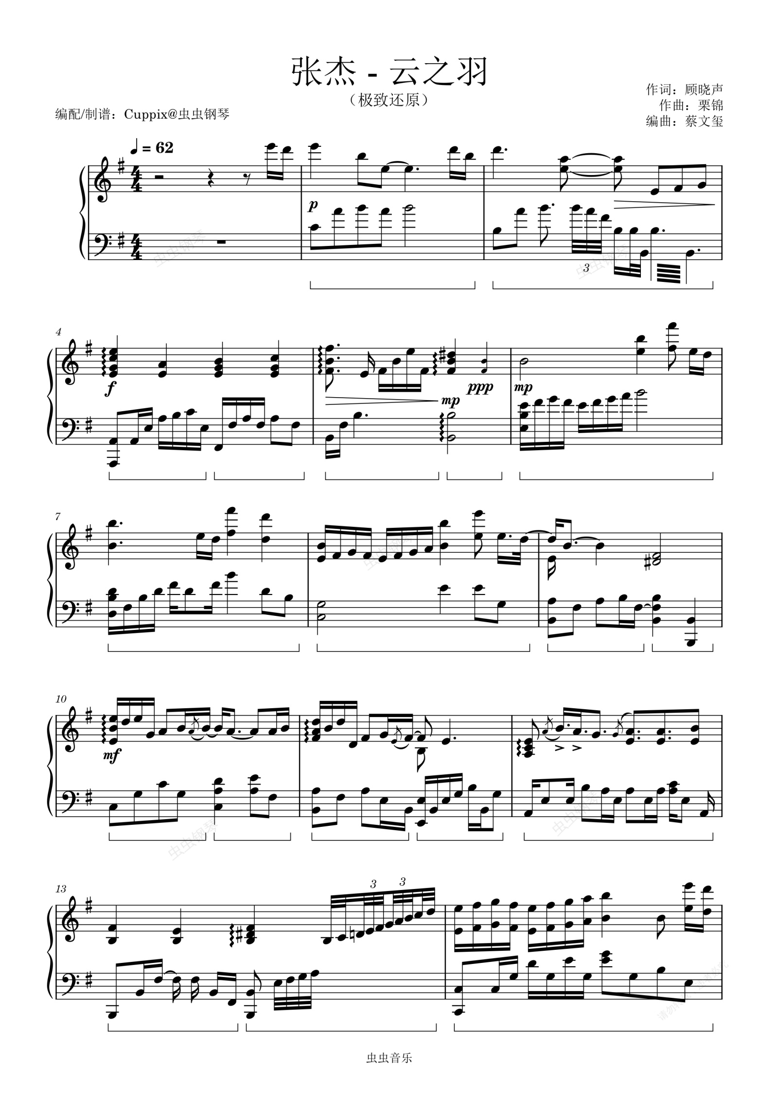 钢琴谱:张杰《云之羽》极致还原-Cuppix编配