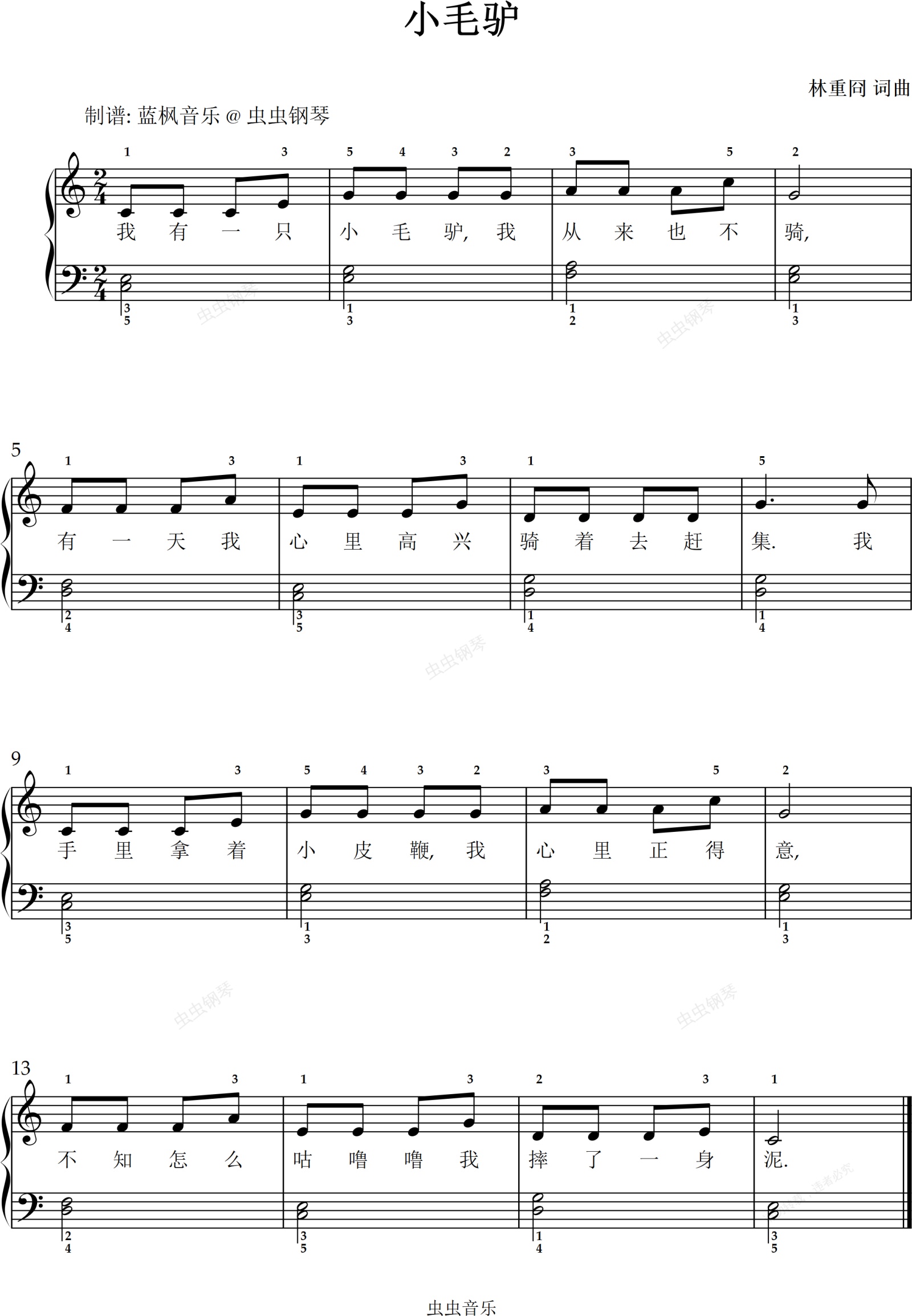 钢琴谱:小毛驴