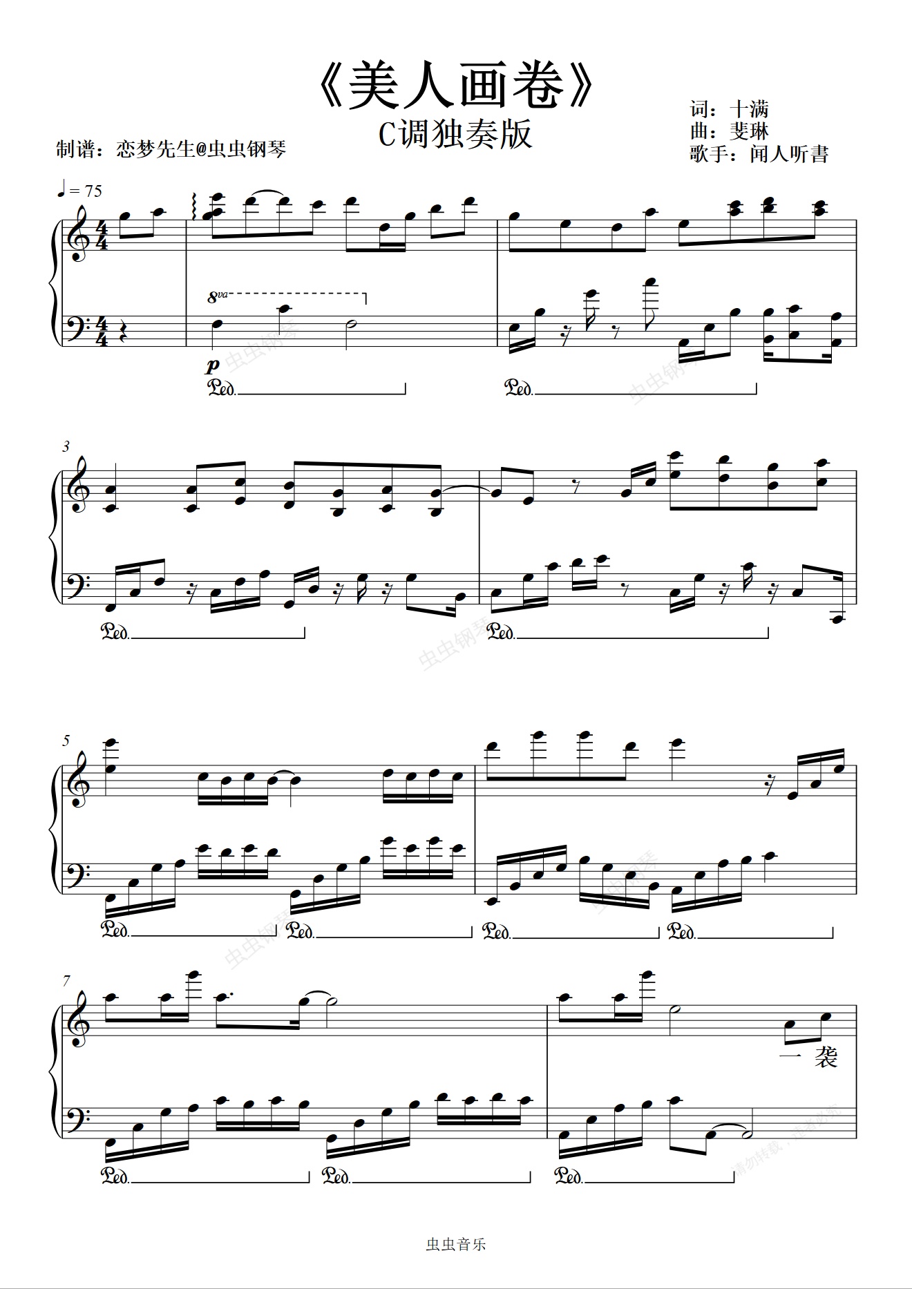 钢琴谱:《美人画卷》还原独奏版